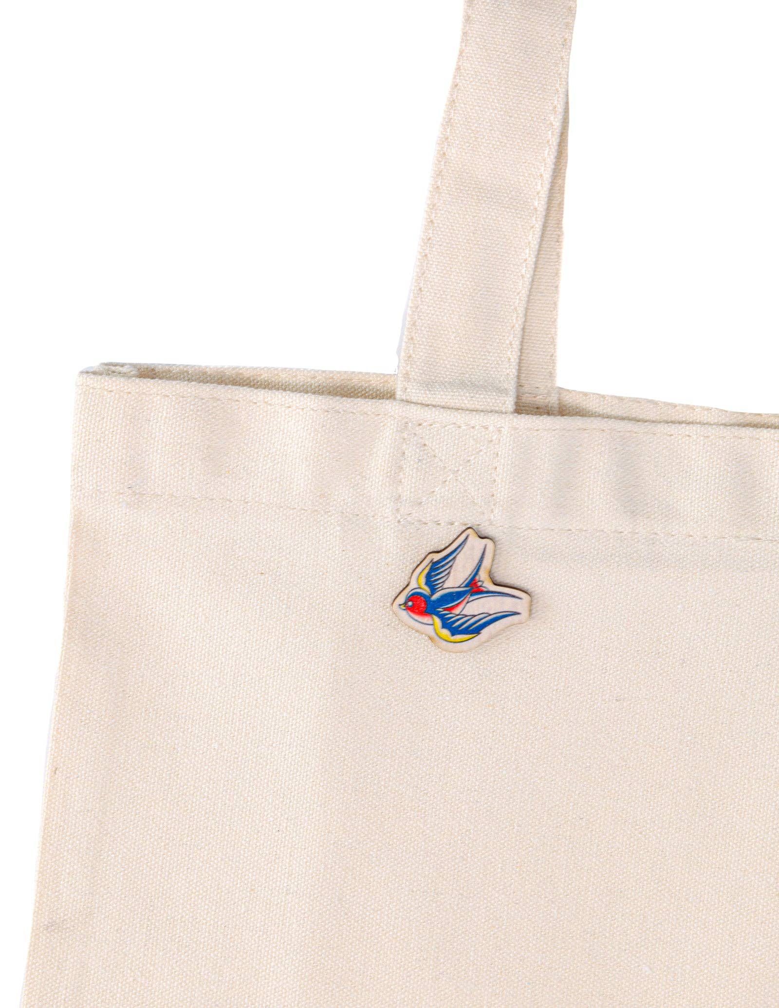 Printed Wood Pin with silicone backing. Sustainably Made in Brooklyn NYC with 100% Sustainable Wood Grown in the USA. Unique Push-2-Popª Design creats a beautiful zero packing product.