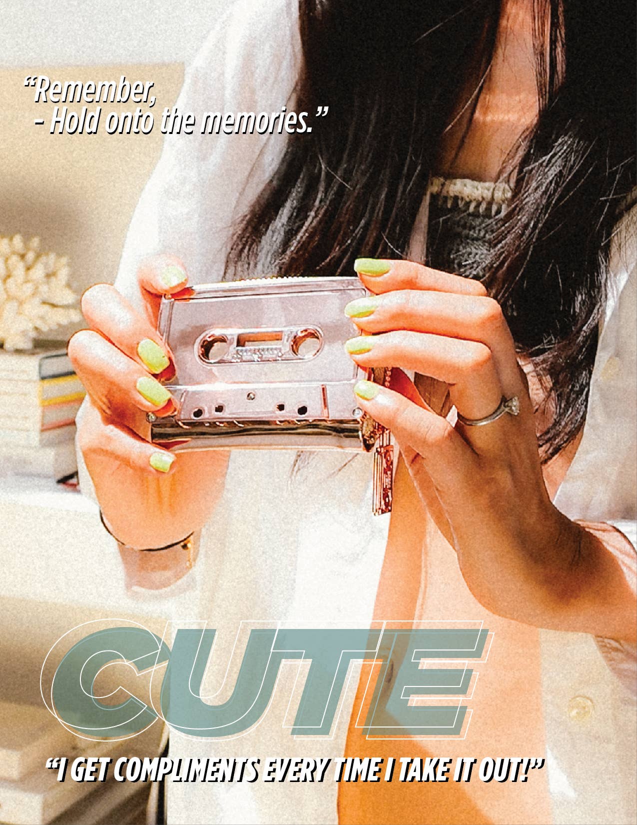 Chrome-plated or matte colored cassette tape design, adorably cute and packed with nostalgic charm.