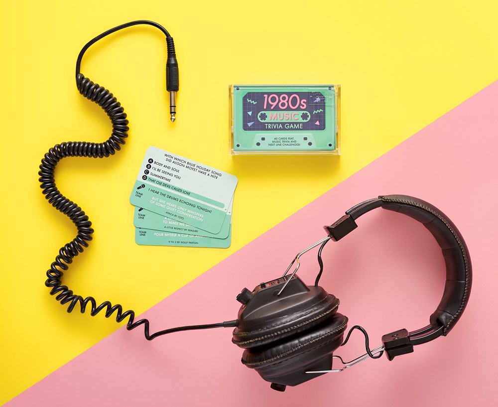 After a bit of 80s nostalgia? Look no further than this totally righteous 80s Music Trivia Game from Ridley's Games! Relive the decade that brought us shoulder pads, mullets and boom boxes with 40 cards featuring music trivia and next line challenges! Divide into two teams and take it in turns to ask the opposing team a question, but the show isn't over yet! Select a player to sing the line of the song listed on the card to their team, who must then correctly sing back the next line of the song to earn another point! Comes packaged in a fun retro plastic cassette tape style case that also serves as a handy stand. Contains full instructions.