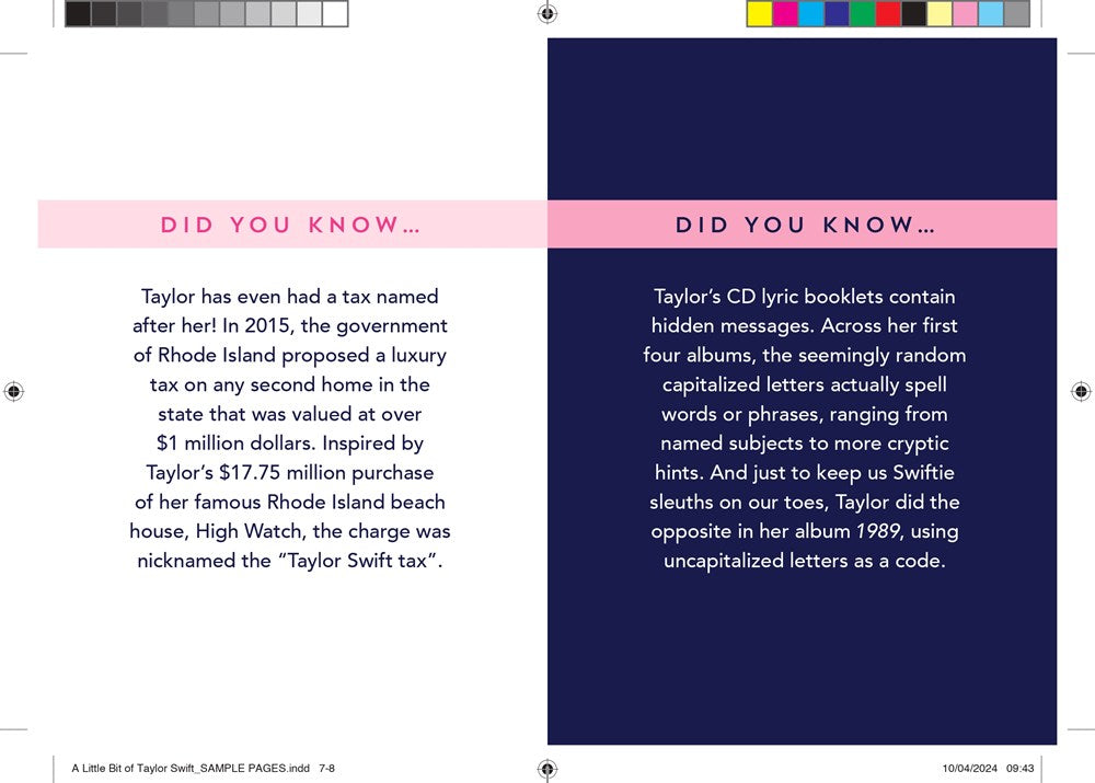 Bringing together inspiring quotes, superfan-level facts and a treasure trove of trivia, this little book is your backstage pass to the enchanting world of Taylor Swift