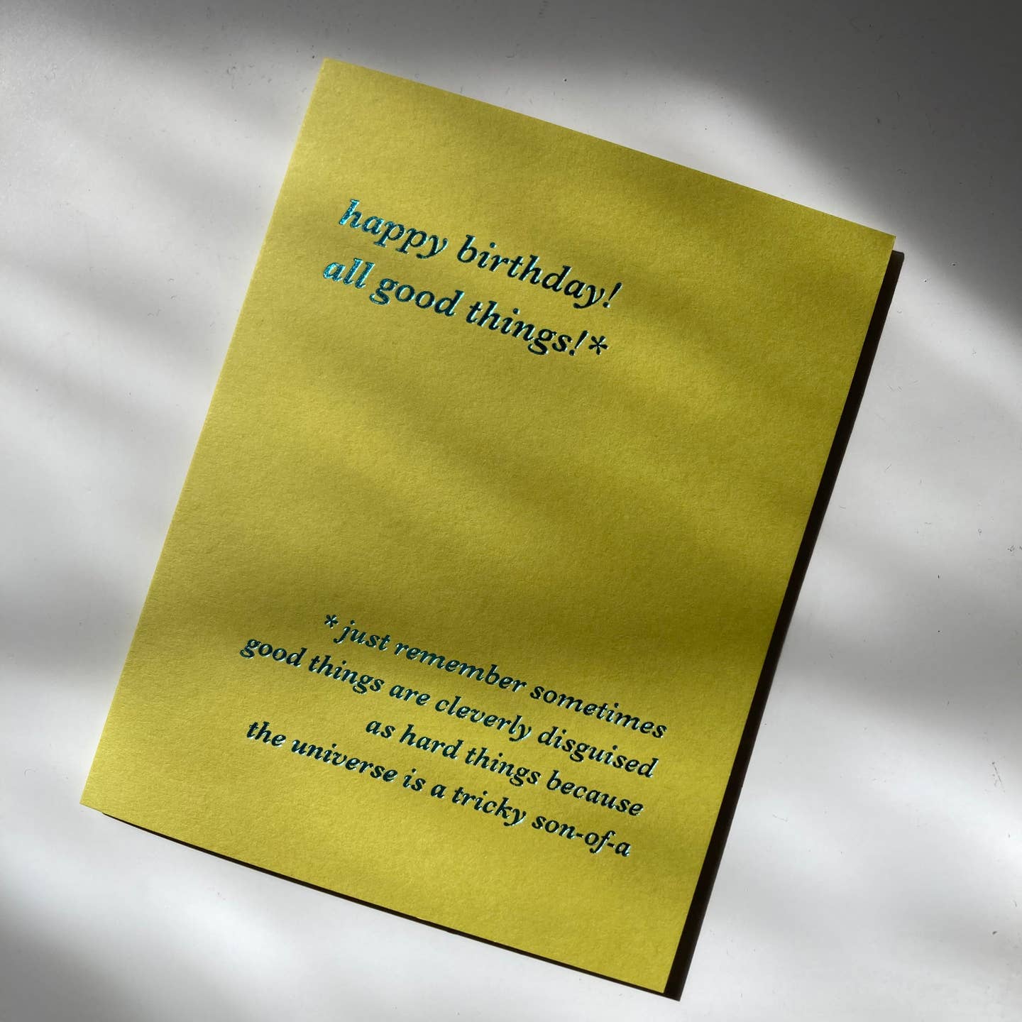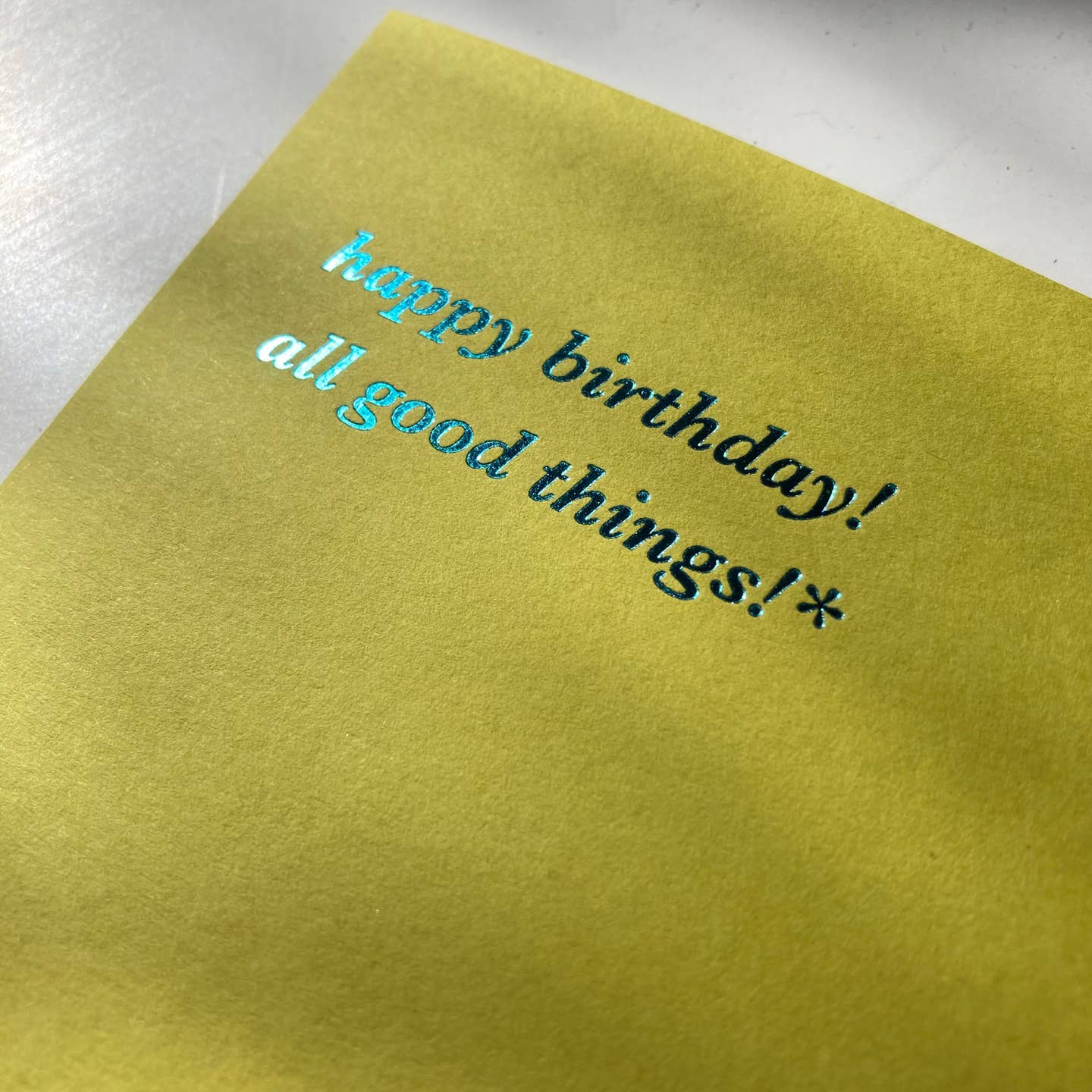 Teal foil on chartreuse card | blank inside | 4.25" x 5.5" (folded)