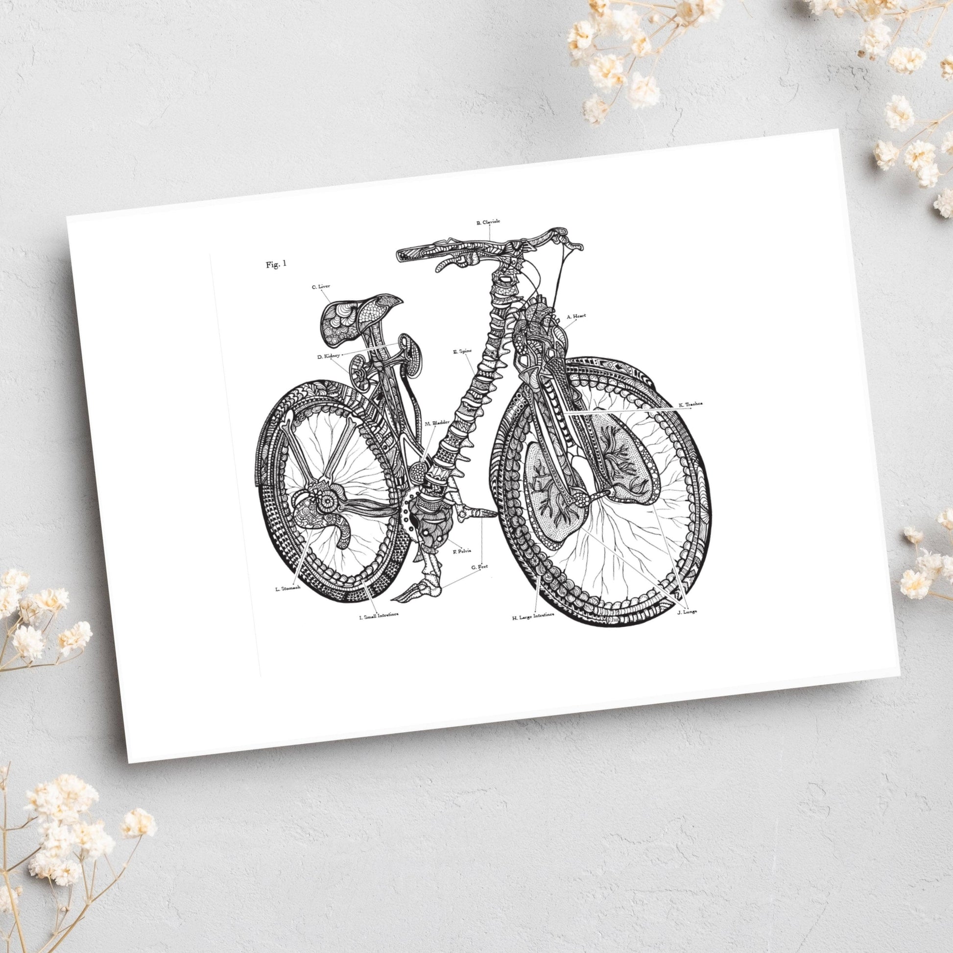 FRONT: Bicycle Image printed as if it is a medical illustration. Organs and bones are listed.
