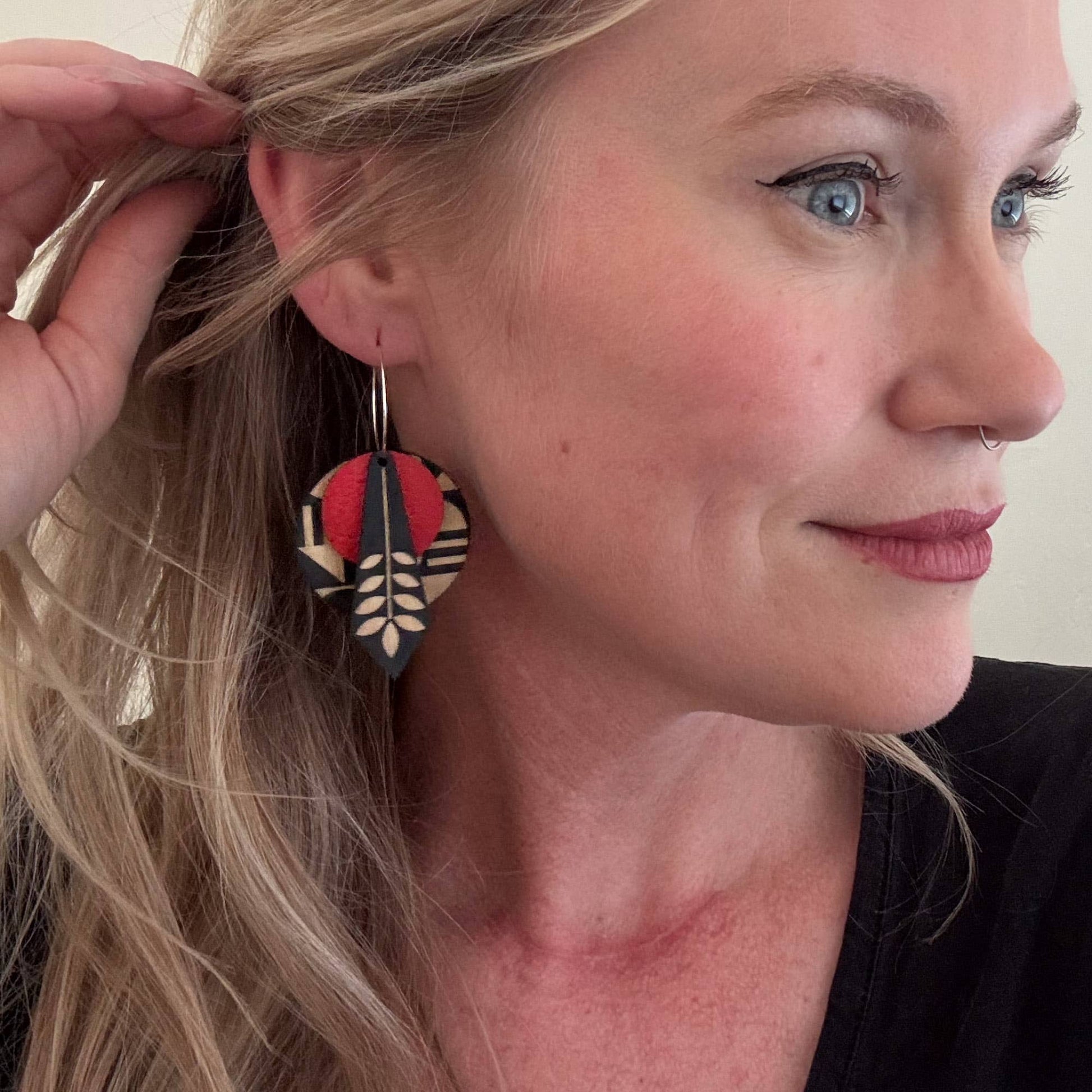 Experience the perfect blend of modern design and versatility with our Lightweight Leather + Birch Statement Earrings. Inspired by clean lines and Danish modern patterns, these earrings are a true testament to contemporary style. Crafted with precision and care, the laser-cut leather and birch layers create a clean, lightweight statement earring.