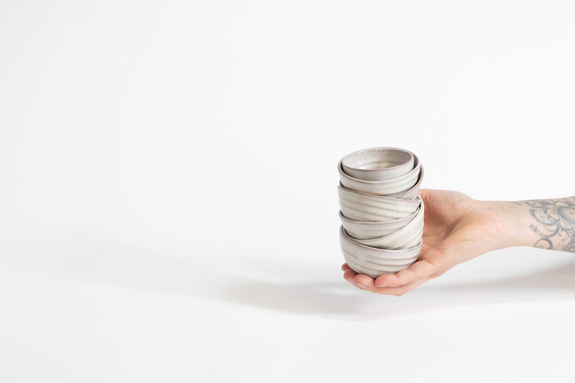 The Artist Choice Little Bowls in cream are a fun warm up project for our potters. Each one is unique - the whole point of our artist choice collection is that the potters get to make what they want and then Chris will choose the bowls for each order when he's packing them for shipping.