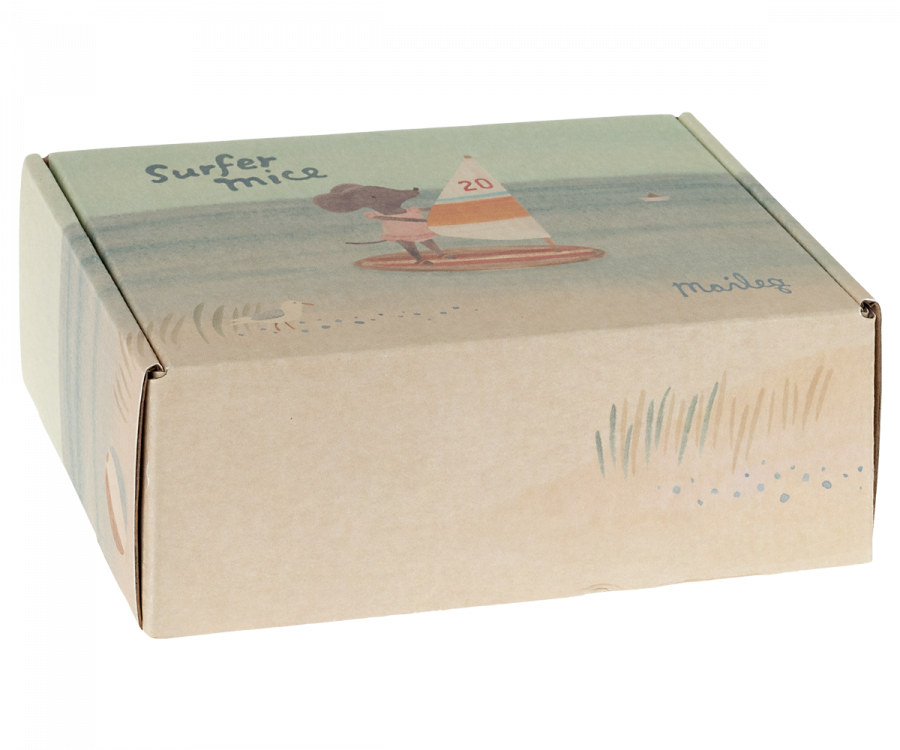 Vacation time. This mouse is ready for a day on the ocean. Assemble her board, make sure she holds on tight, and glide her along the waves with ease.