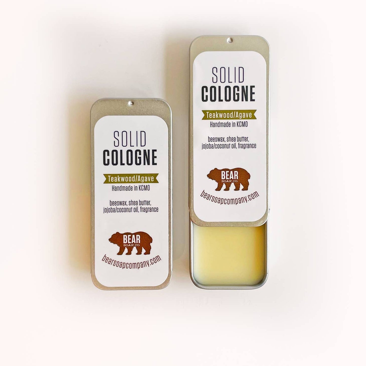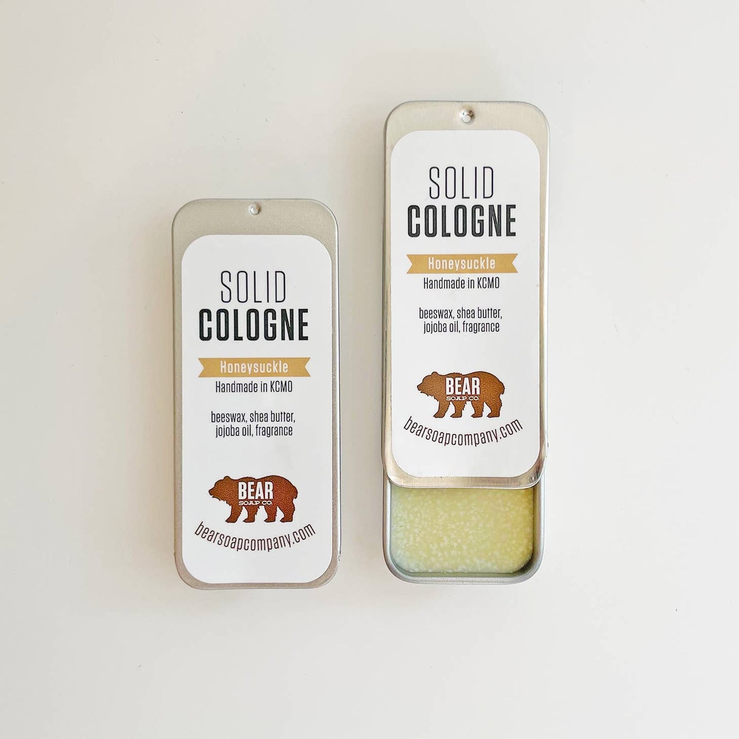 Solid cologne comes in a convenient size metal tin to carry on the go. To apply, scrape a small amount with the nail, then rub between your fingers to melt. Apply to desired area. Repeat. These make great stocking stuffer gifts.