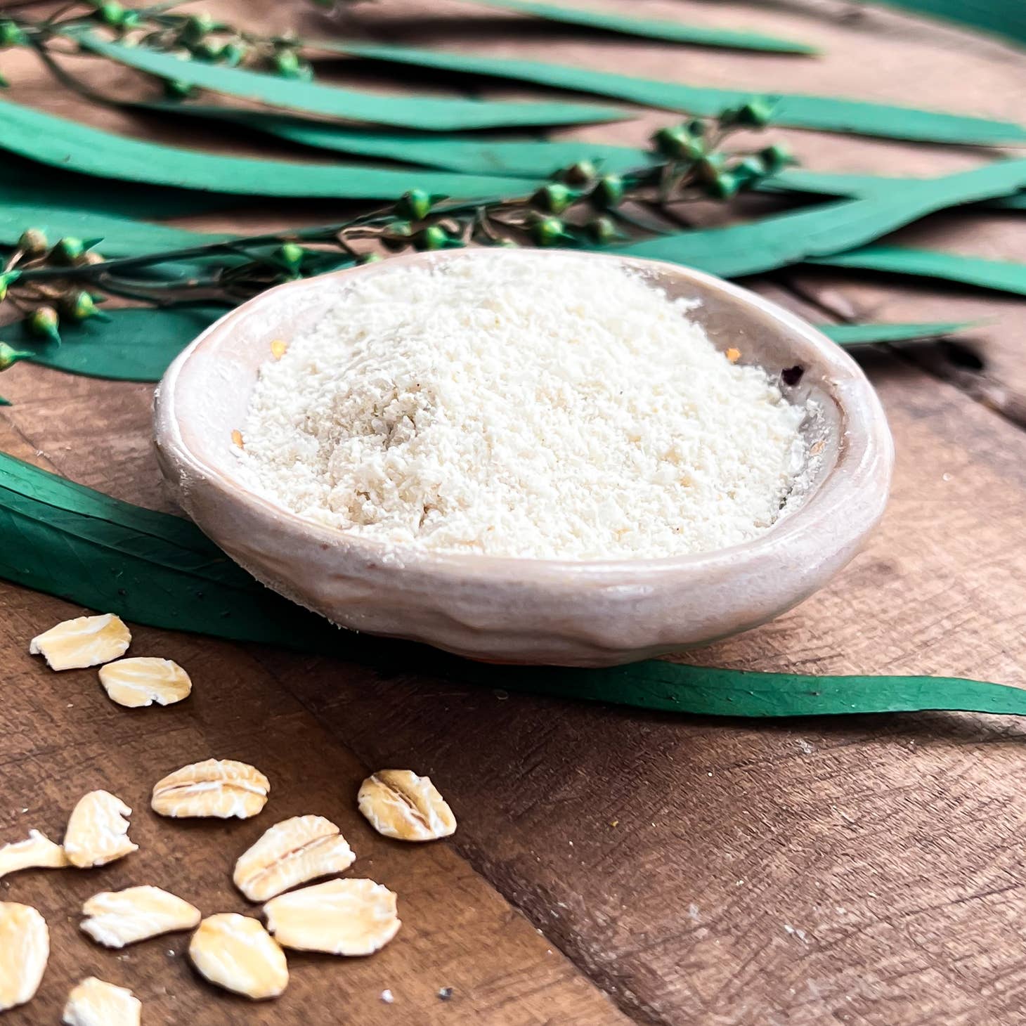Coconut Oatmeal With only the natural oats and coconut milk powder as its scent, our bath milk is ultra soothing and calms itchy dry skin. This bath soak is wonderful for sensitive skin and is safe for kids. Sprinkle a handful into your next bath and then sit back and relax!