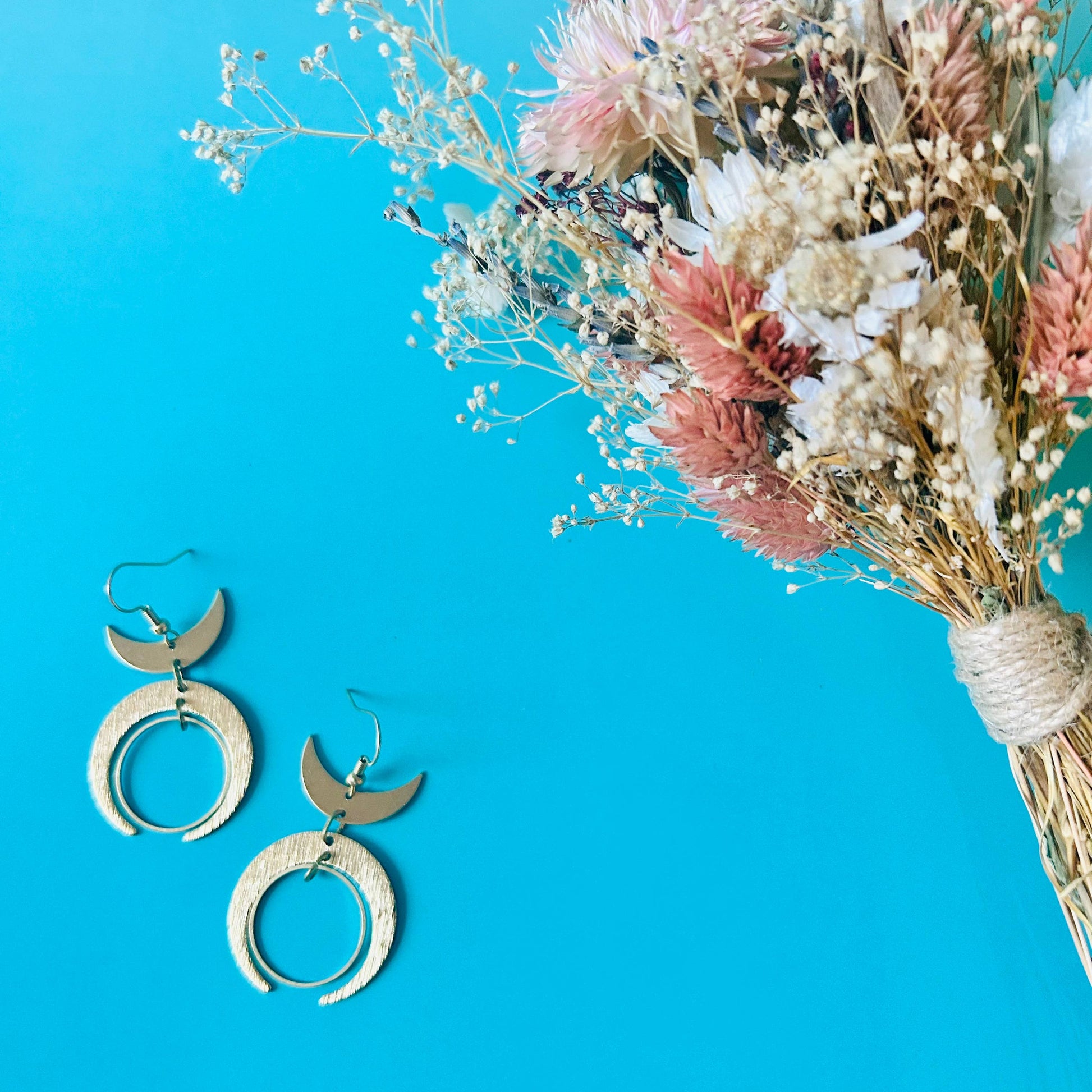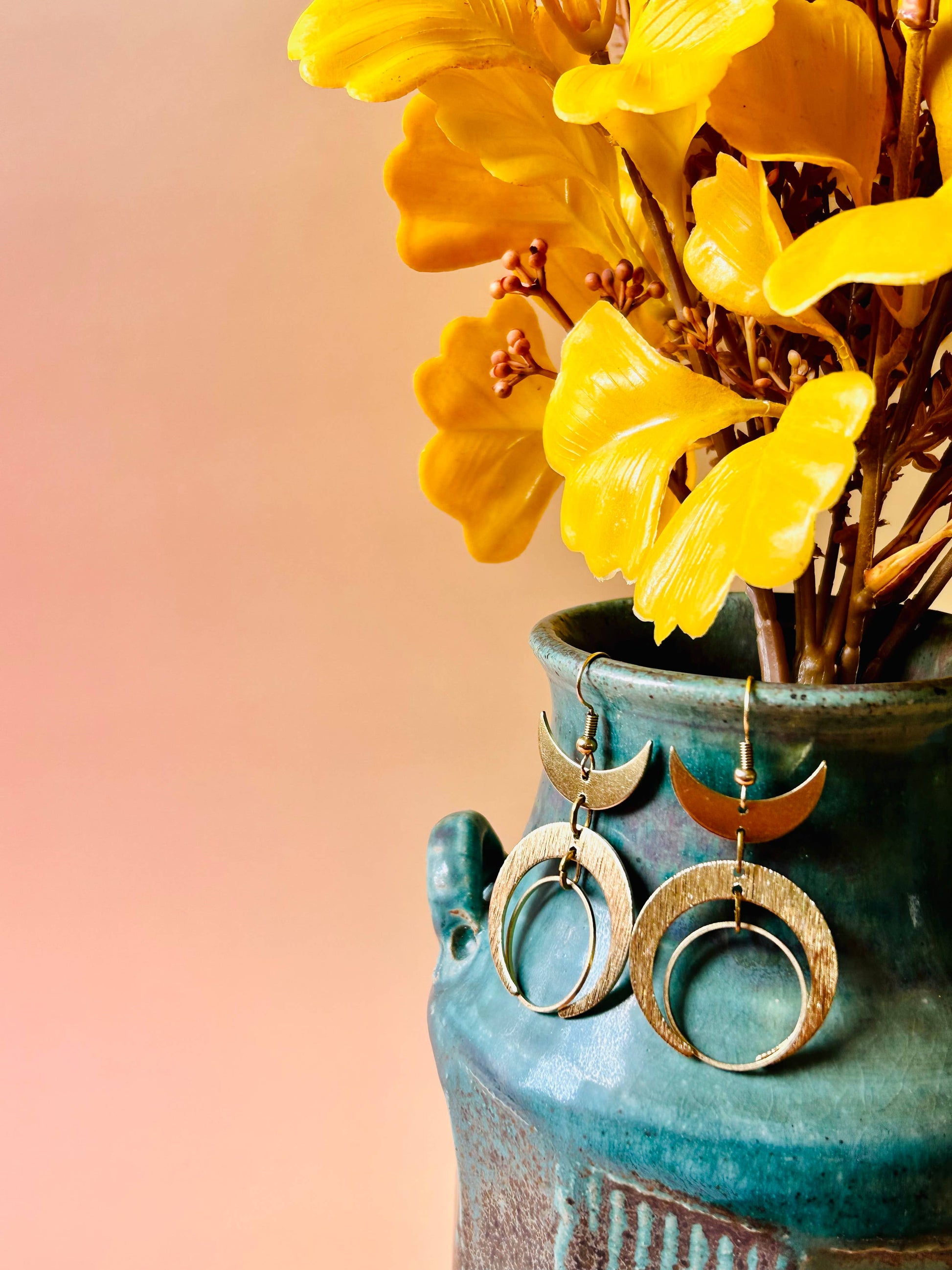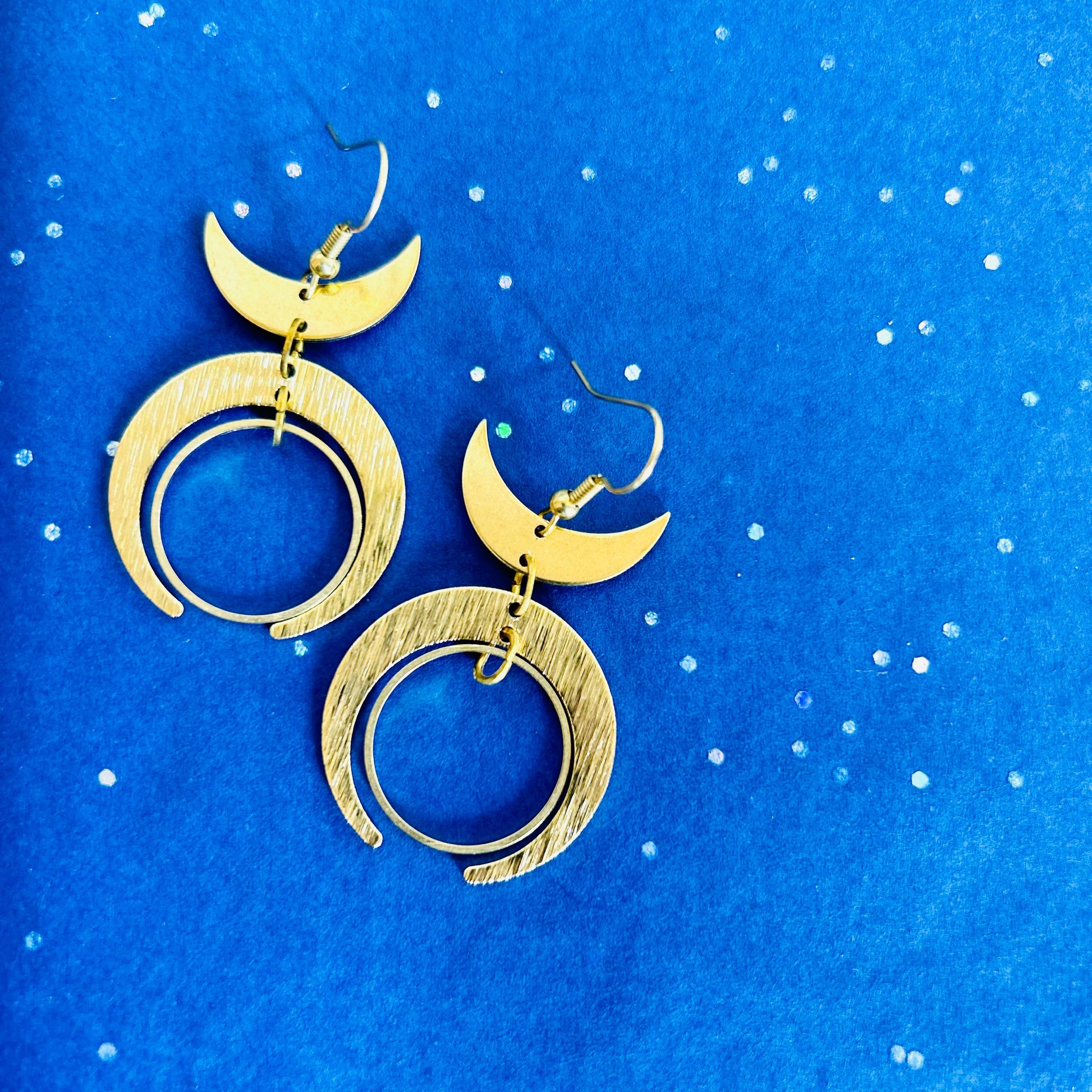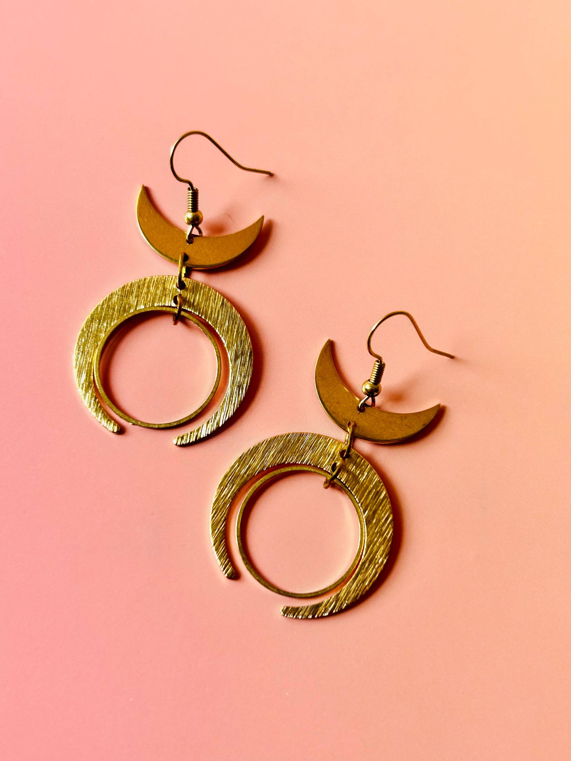 Add a little magic to your look with these lovely brass crescent & delicate hoop findings. Brass -All materials are nickel & lead free