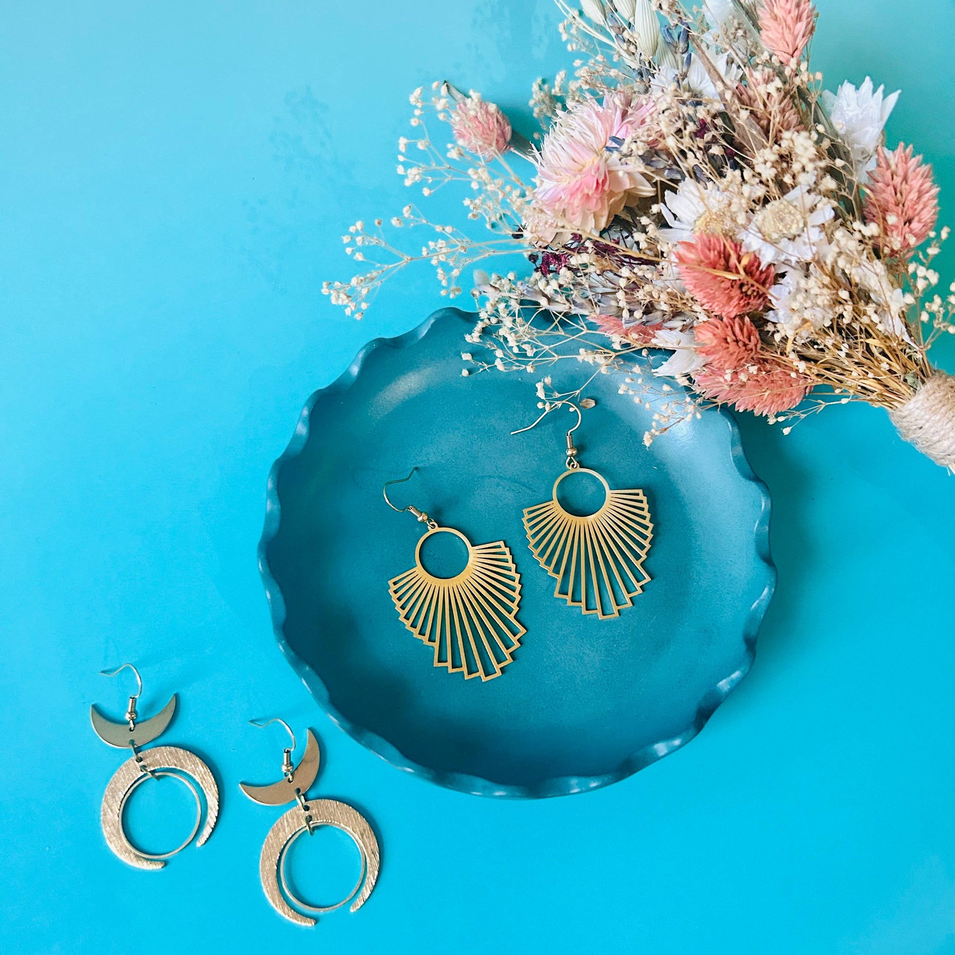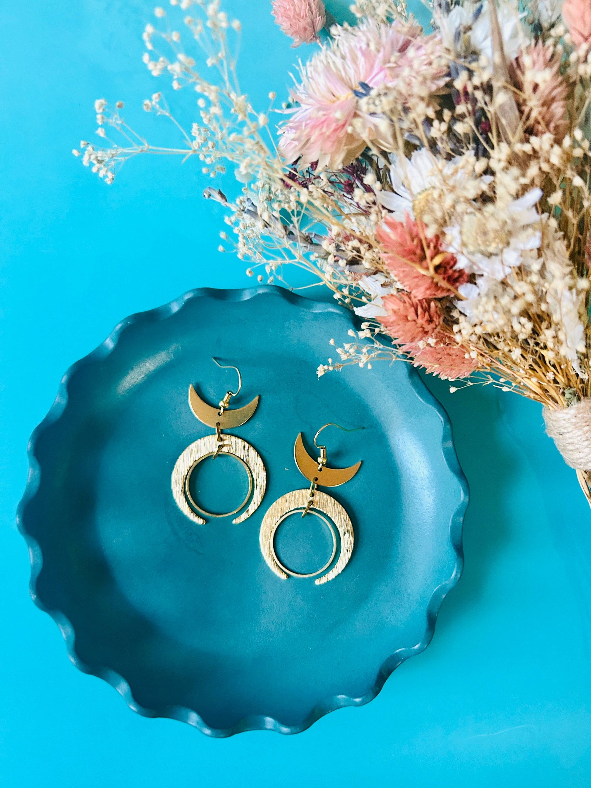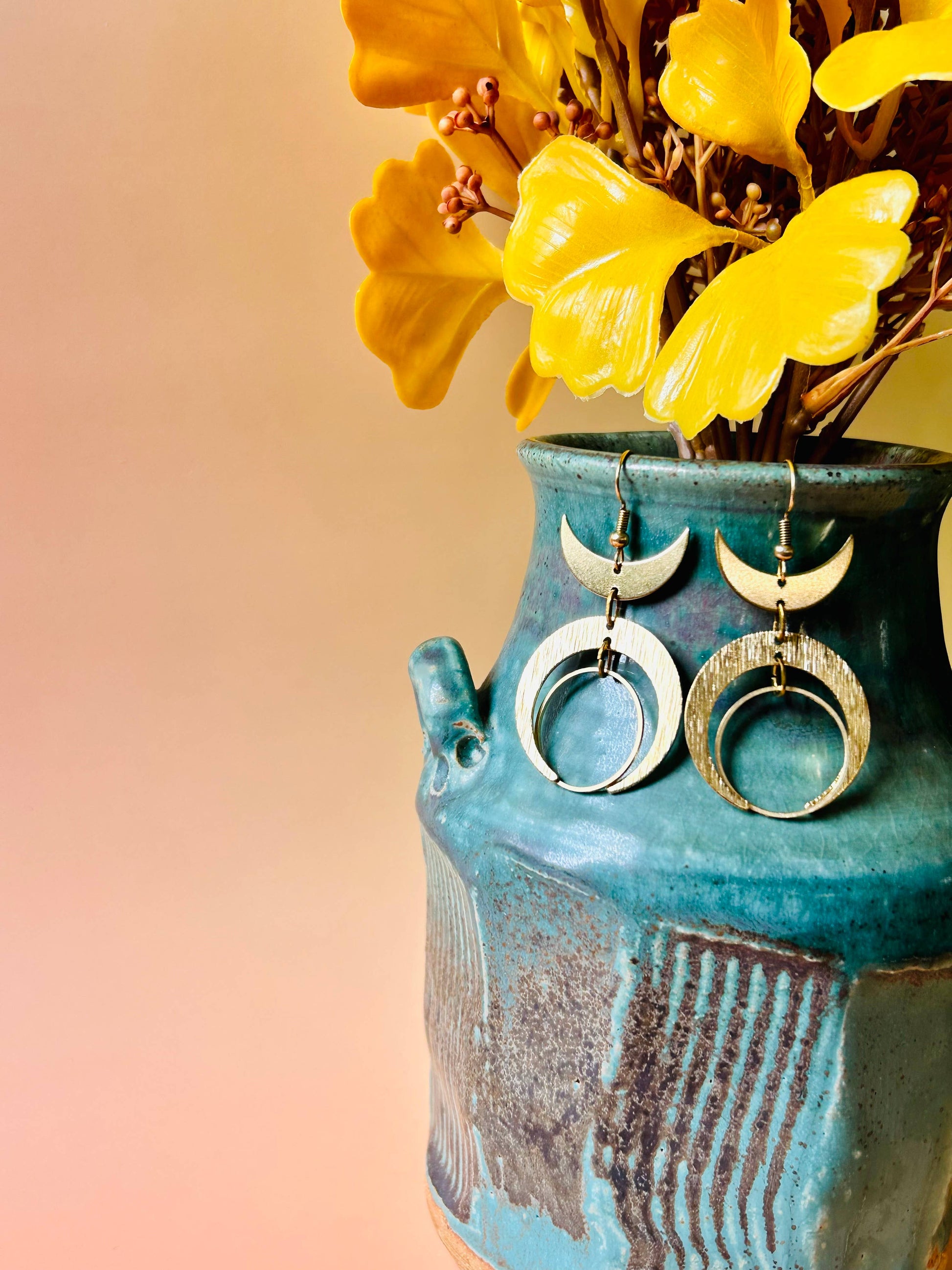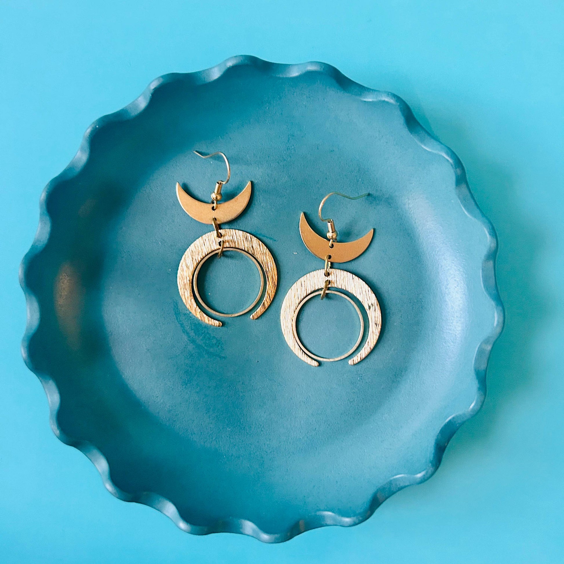 Add a little magic to your look with these lovely brass crescent & delicate hoop findings. Brass -All materials are nickel & lead free