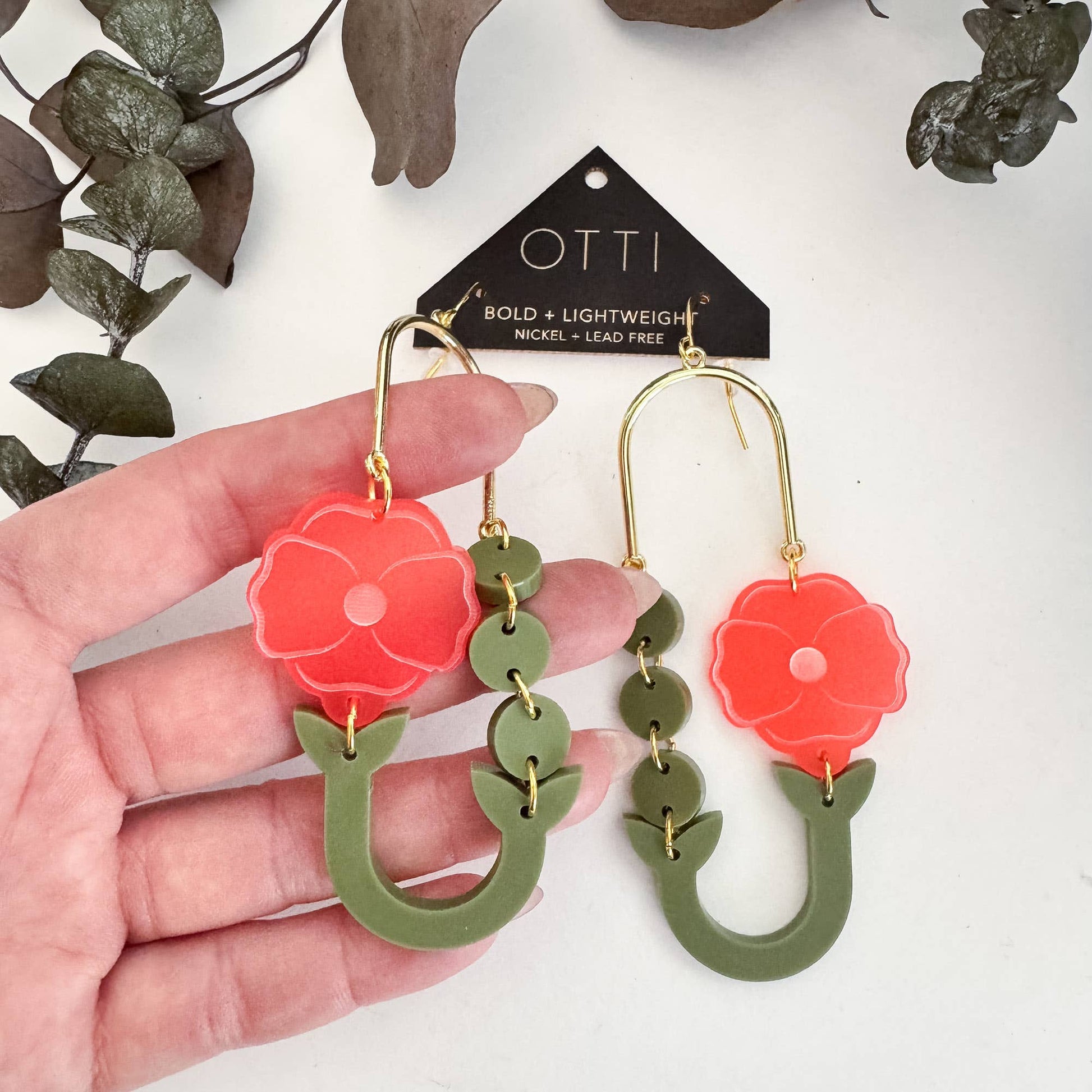 Botanical-Inspired Lightweight Acrylic Earring: Poppy Loop