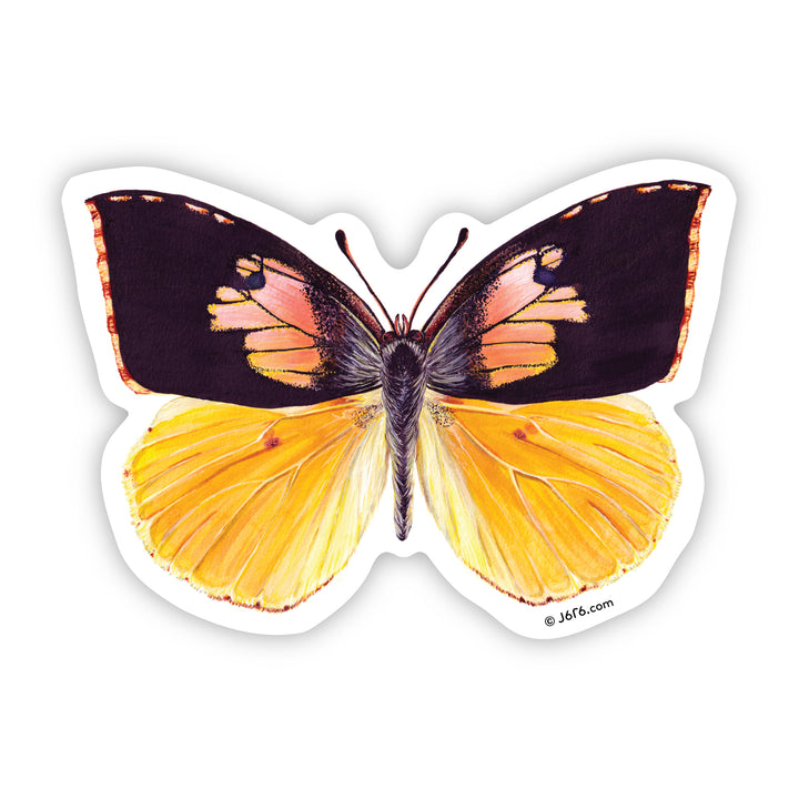 Colorful, creative, and smile-inducing premium vinyl stickers feature J6R6 artwork that is hand painted in house and designed to make you feel sunny. This California dog face butterfly sticker is sure to brighten up your stuff.