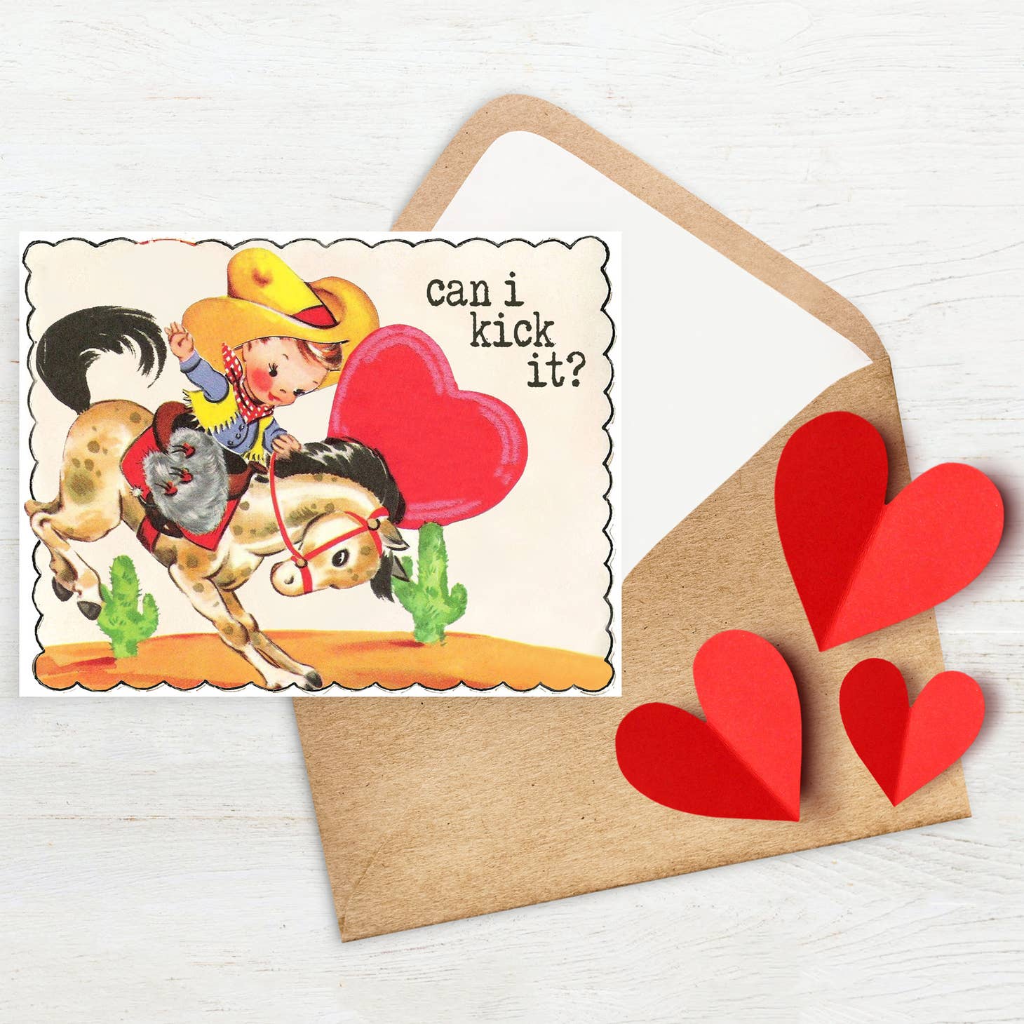 YES YOU CAN! This series of notecards mixes vintage artwork with witty sayings... and leaves room inside to write your own message! You know, a throwback to the charm of heartfelt + true, handwritten letters... Card + heavy, craft-paper envelope measure 5.5" x 4.25"