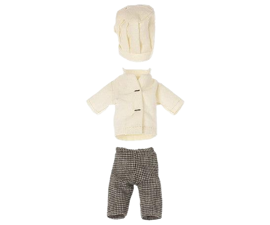 Make your big sister or big brother mouse ready for hours of cooking with this loose set of chef clothes.