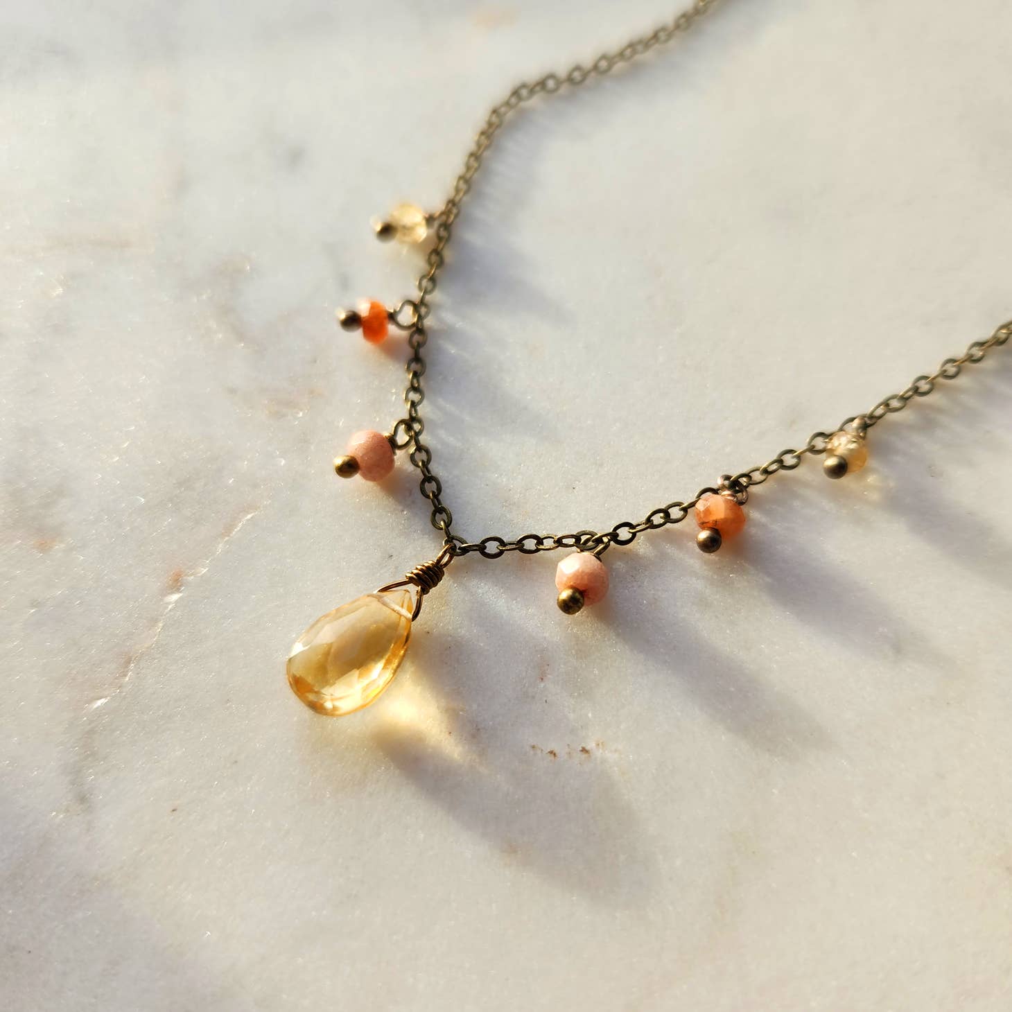 EDGY PETAL citrine and sunstone multi color fringe necklace.