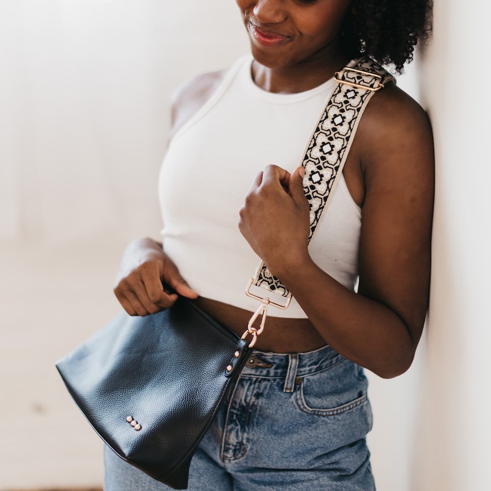 Make a statement with the Cora Structured Hobo Bag! This structured hobo-style bag features a guitar strap and snap closure for easy access, plus two handy zippers (one on the outside, one on the inside) for extra security. It also includes a small cloth pocket inside, so you can keep your goodies safe and organized. And with its flexible body, you can dress it up or down for any occasion!