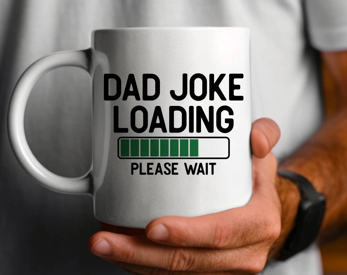 Dad Joke Loading - Funny Father's Day Coffee Mug Printed in North Carolina. Top Rack Dishwasher Safe. Double Sided Print.