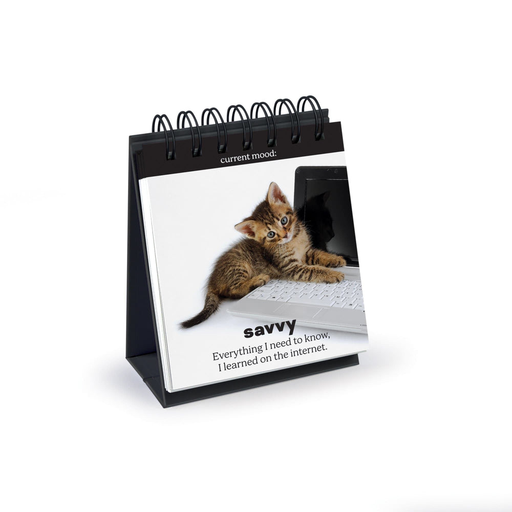 Daily Cattitudes is a pawsome desktop accessory to show your mood whether you’re feelin’ fabulous, adventurous, flabbergasted, or anything in-between! The feline flip book contains 48 moods, each featuring an adorable kitten and funny phrase to make you smile. You’ll be the office hero for displaying a daily dose of cute and warning your coworkers of your mood that day.