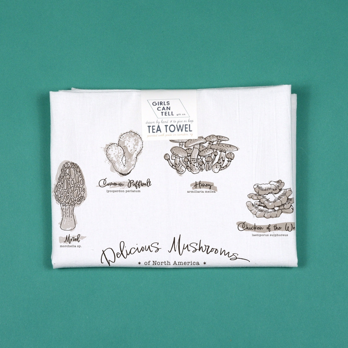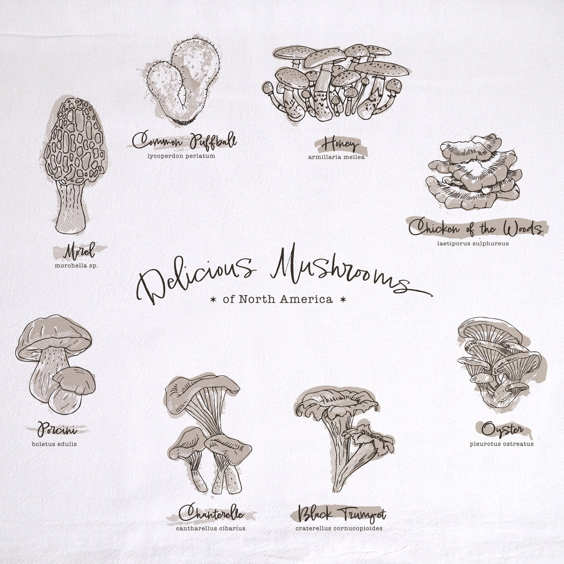 Part of our mushroom collection, this tea towel showcases some of the delicious mushrooms you can find foraging in the forests and woodlands of North America.