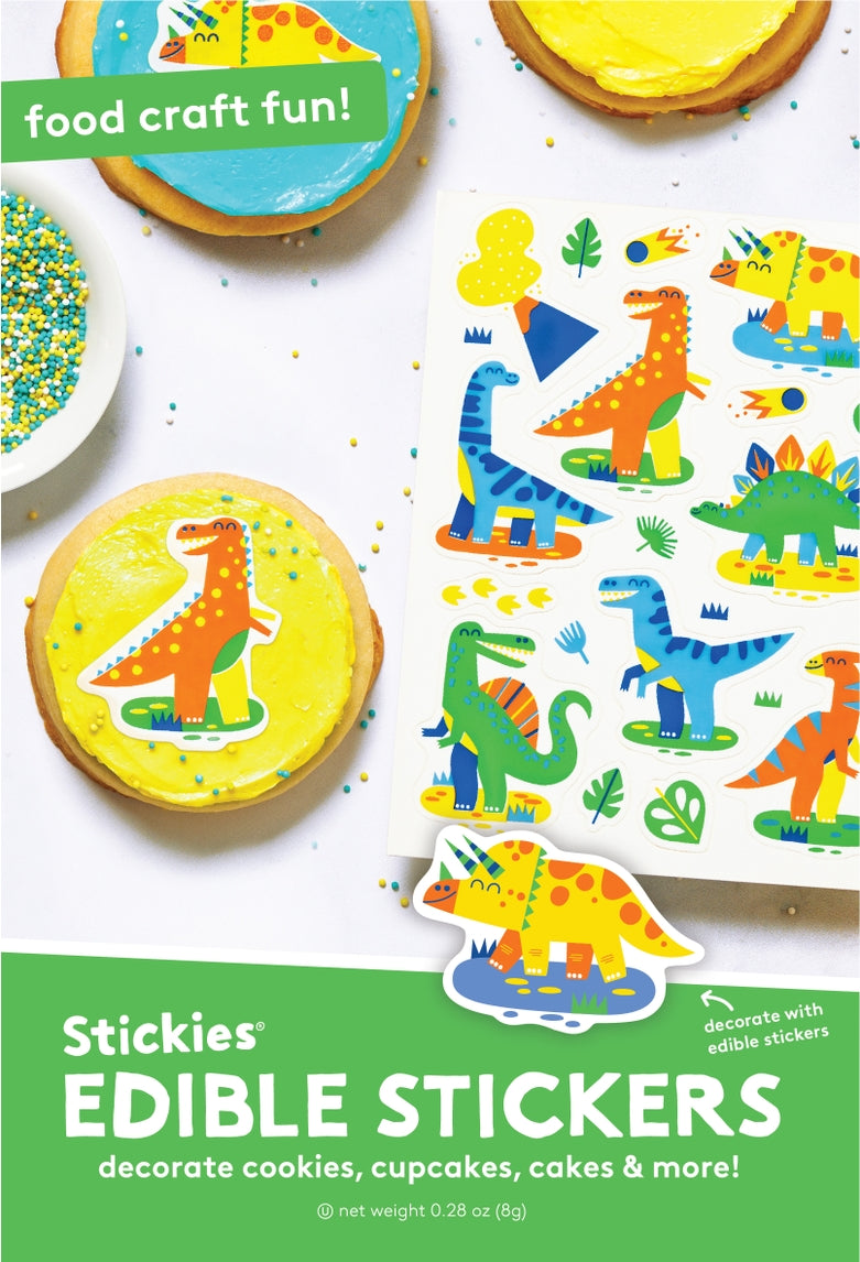 Our dinosaur and prehistoric-themed edible decorating stickers are a delightful and unique experience for easy baking, gifting, food crafting, birthday party favors, hosting DYO cookie parties, baking kits and gift box businesses.