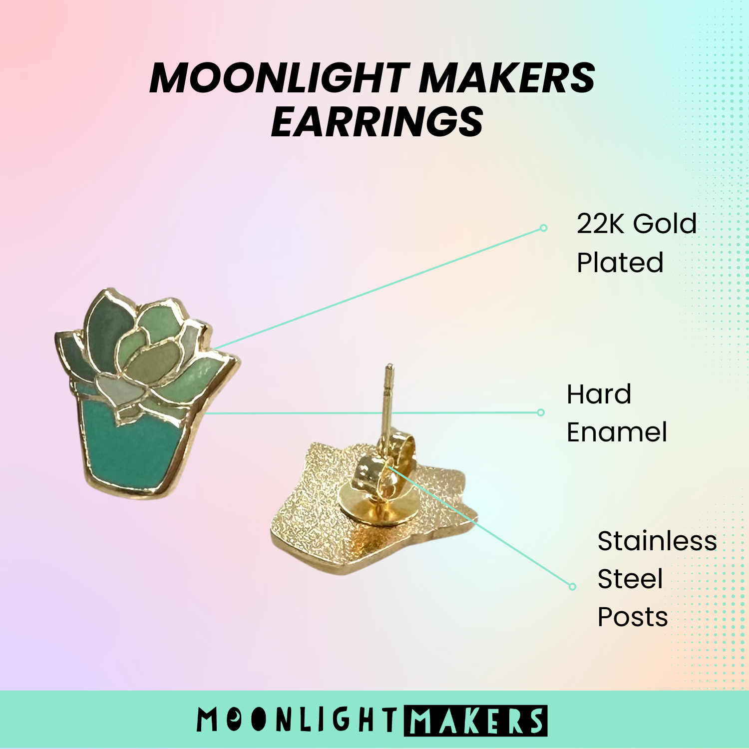 FEATURES: Hard enamel with 22k gold plating Stainless steel posts Hypoallergenic Original illustrations designed in NC 1/2" on the longest side