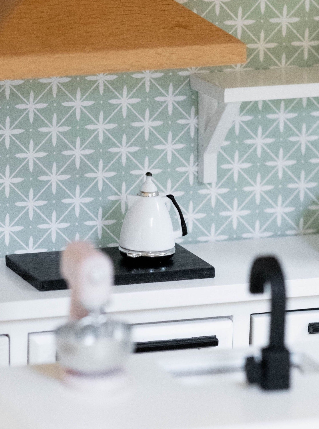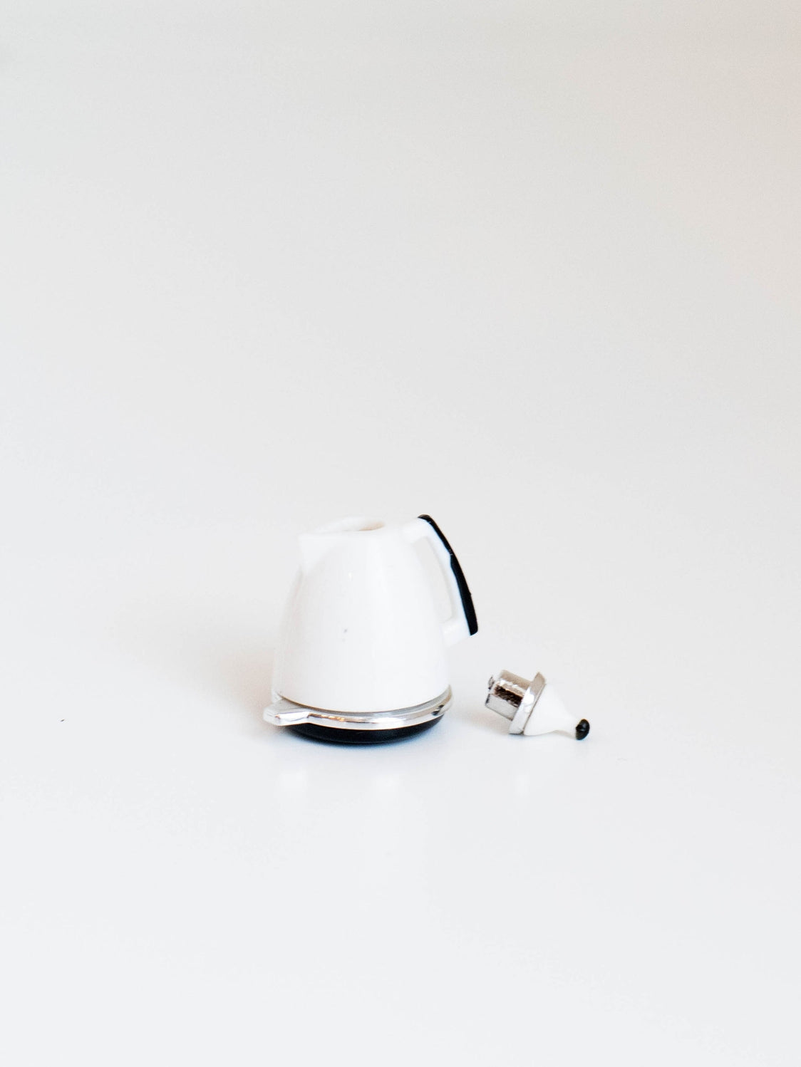 A vintage inspired classic coffee pot to hold your miniatures morning brew. The lid removes allowing for imaginary pouring of your miniatures favorite blend.