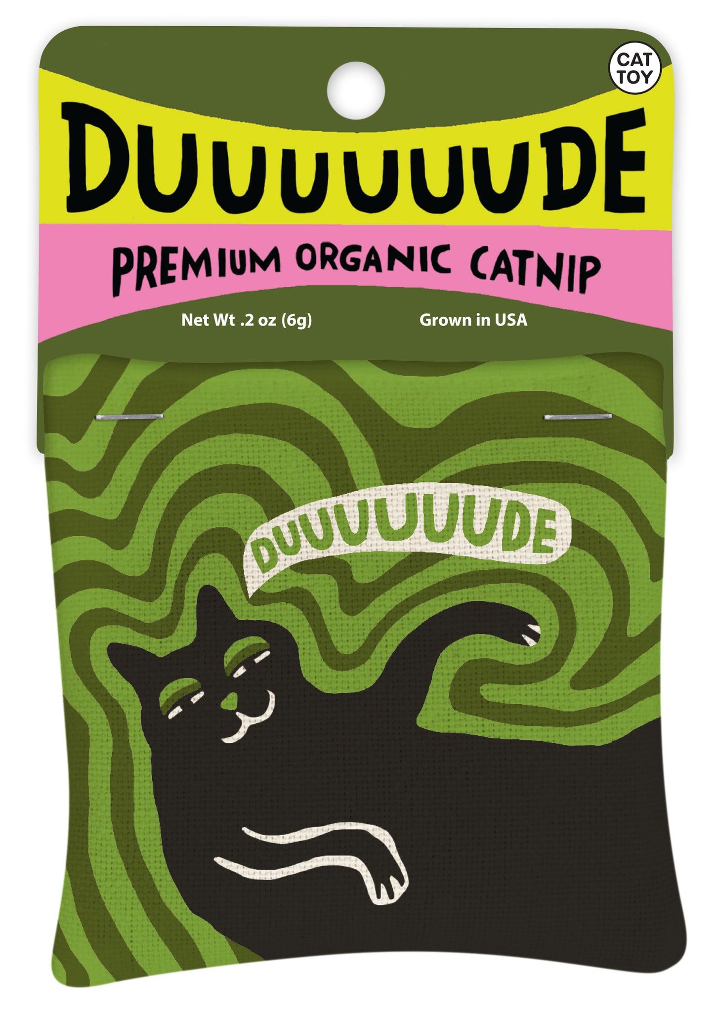 - 100% cotton pouch, screen-printed and stuffed with premium organic catnip grown in the USA.