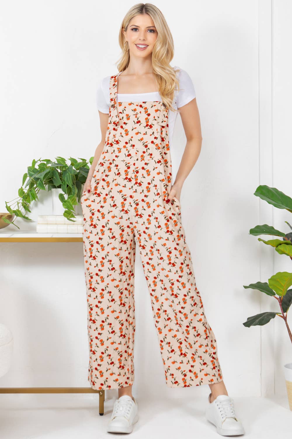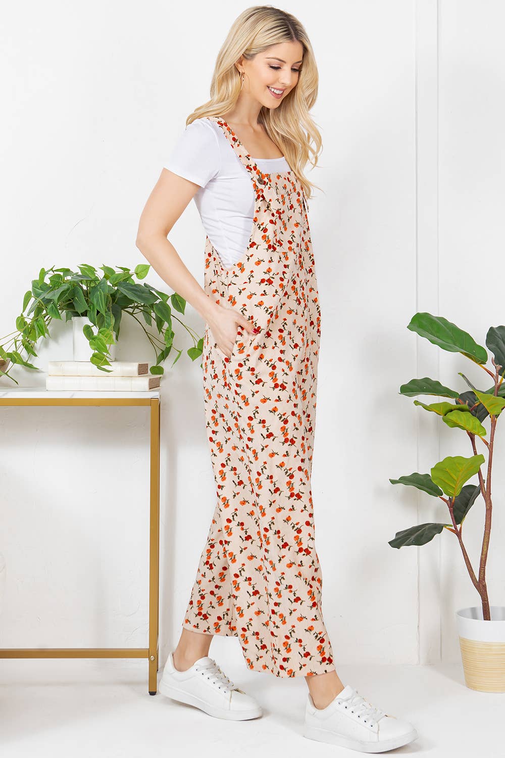 Upgrade your wardrobe with our Floral Print Corduroy Overall. Crafted with a wide leg, adjustable strap, and convenient pocket, this stylish piece will elevate your everyday look. The floral print adds a touch of whimsy and charm to your outfit. Perfect for any occasion, this overall offers both functionality and fashion.