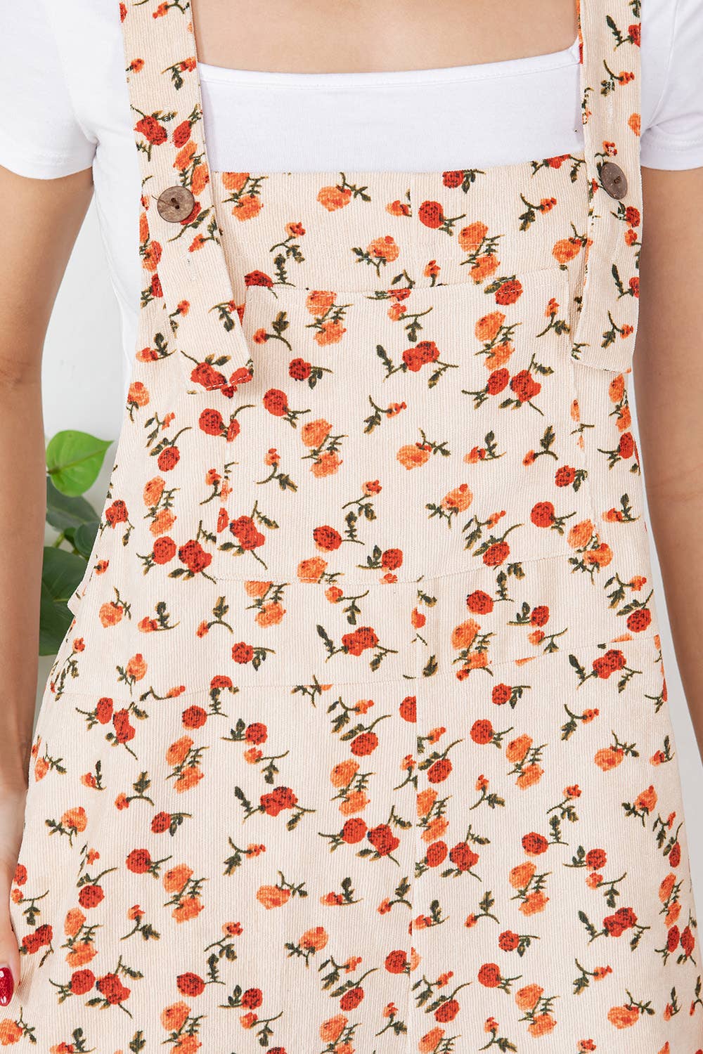 Floral Print Corduroy Overall