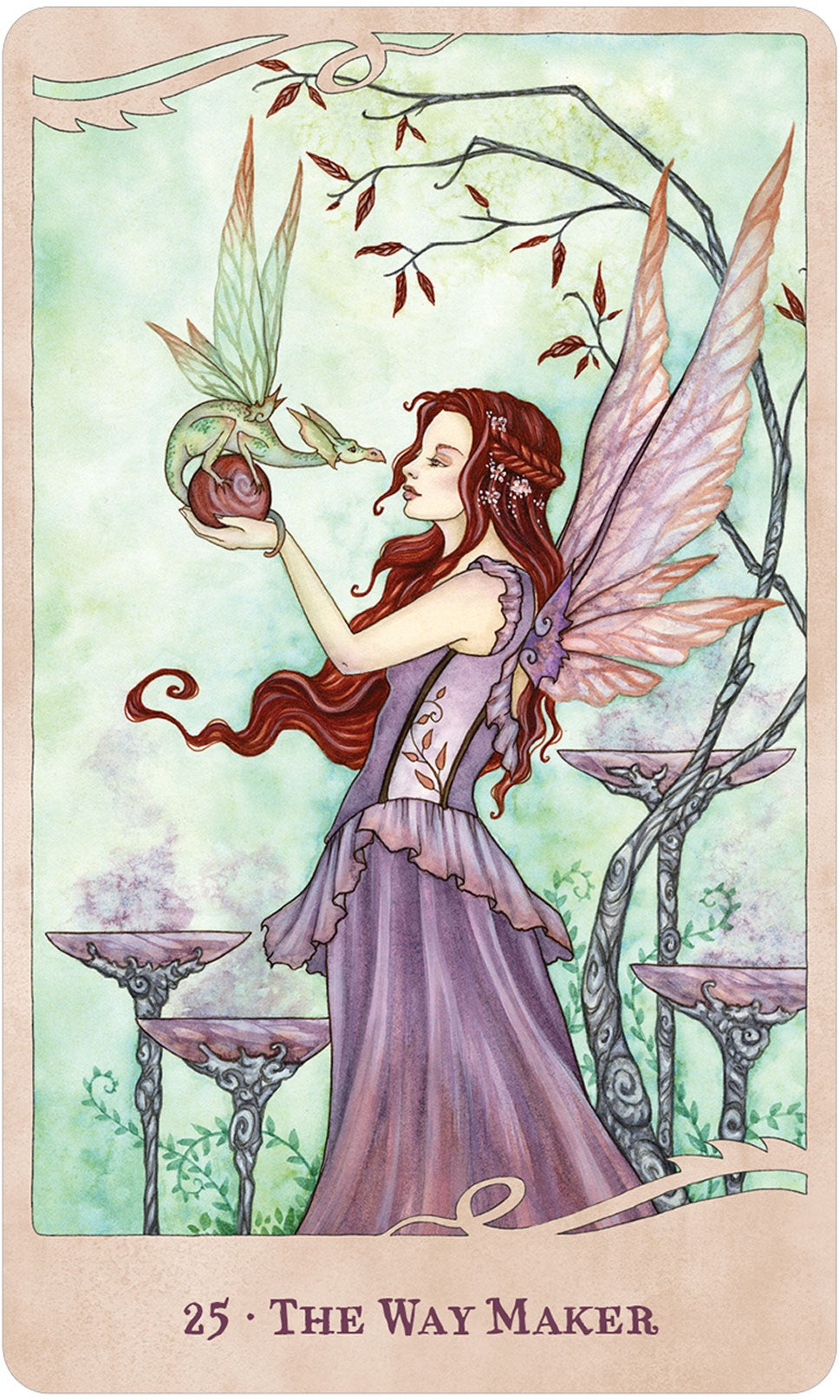Whoever said diamonds are a girl’s best friend never met a dragon. Inside this deck by popular artist Amy Brown, you’ll find majestic guides, petite playmates, cute companions and wild free spirits. They are all allies to those who hold faeries and fables dear. Because of their voracious appetites, they have tasted many truths, imbibed much wisdom and learned a thing or two about navigating the skies of change. They also recognize their own. Though you may not be able to detect them yet, you have wings. Your psyche is equipped to soar: through your own adventures, beyond your wildest imaginings and into the realm where impossible things happen every day. Discover the power of fire and flight in this special collector’s book and deck. Set includes 44 pink gilt-edged cards, organza pouch, and 104-page guidebook, packaged in a magnetic hinged, spot varnish accented box.