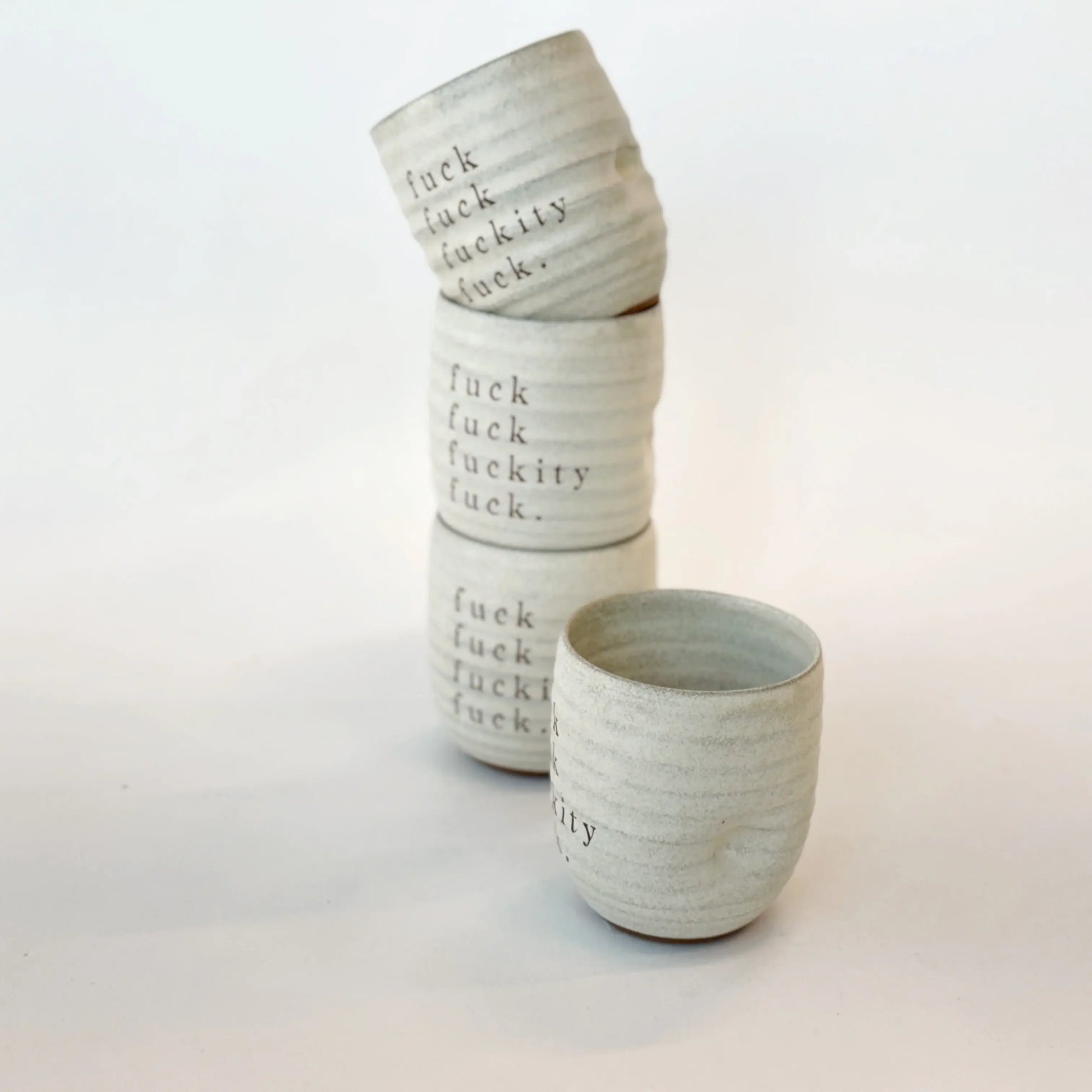 From sparkling water to cocktails, The Cream Fuck Fuck Fuckity Fuck everyday tumbler is your all-in-one solution. Add some profanity and it’s a confirmed home run! The Cream Everyday Tumbler is your new favorite handmade mug for every beverage need. Holding a comfortable 12 ounces, it's adorned with gentle throwing ridges and a thumb indentation for that perfect grip. Ideal for a coffee, chilled can of sparkling water with ice, your go-to tall cocktail, or a soothing hot tea, this tumbler is as versatile as it is stylish. It's not just a drinkware piece; it's a lifestyle upgrade.