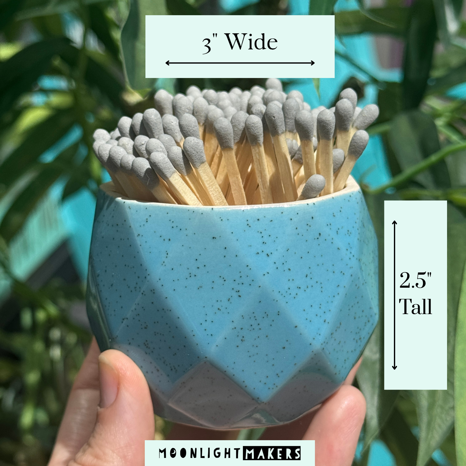 Each holder measures 2.5" tall x 3" wide and fits standard 3" matches (100 included).