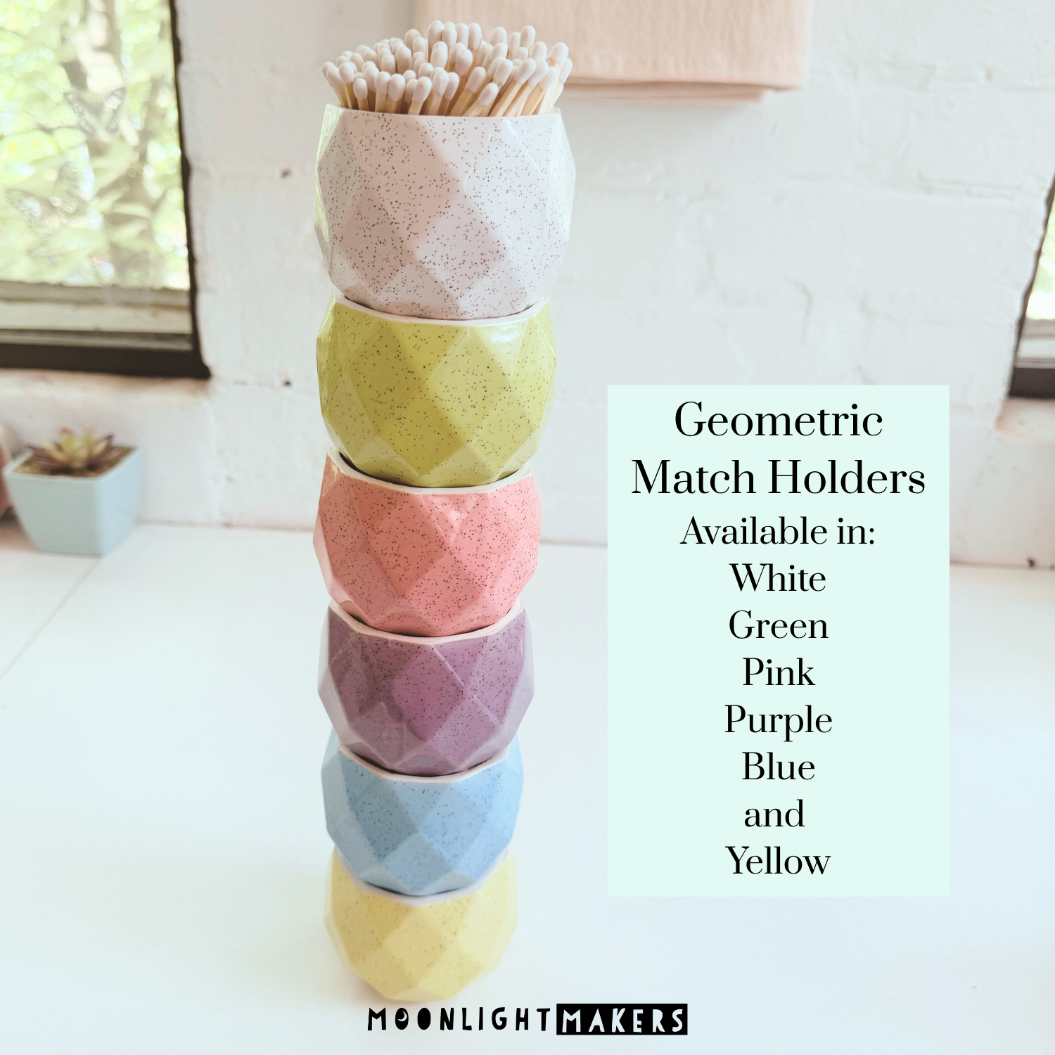 Geometric Match Holders with Matches - 6 Colors
