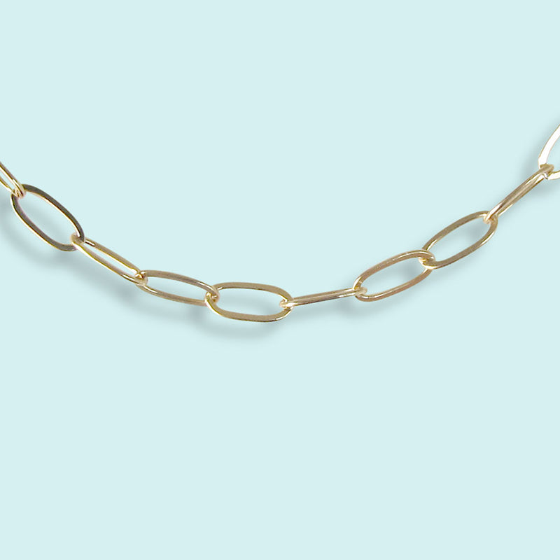 A simple long link chain with a substantial clasp that can be worn in the front or back. A great necklace to layer with a pendant.