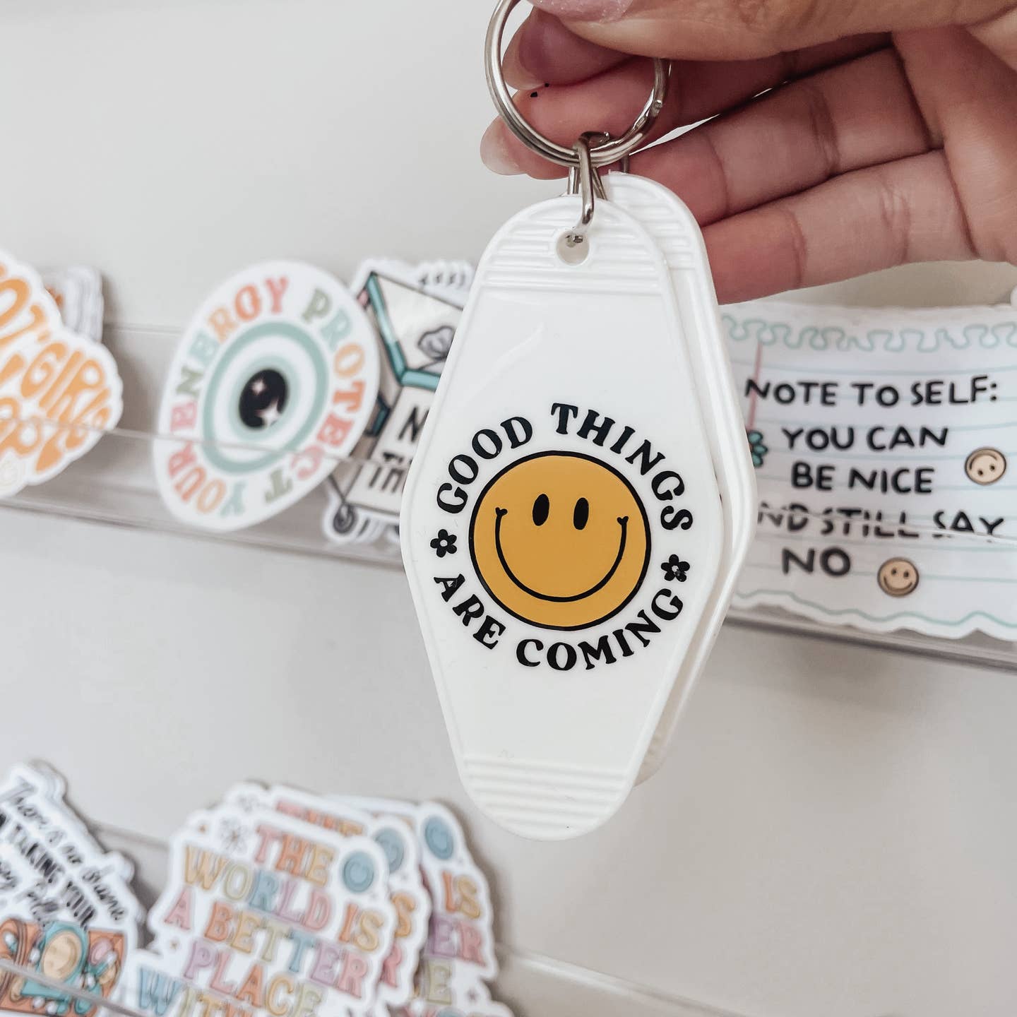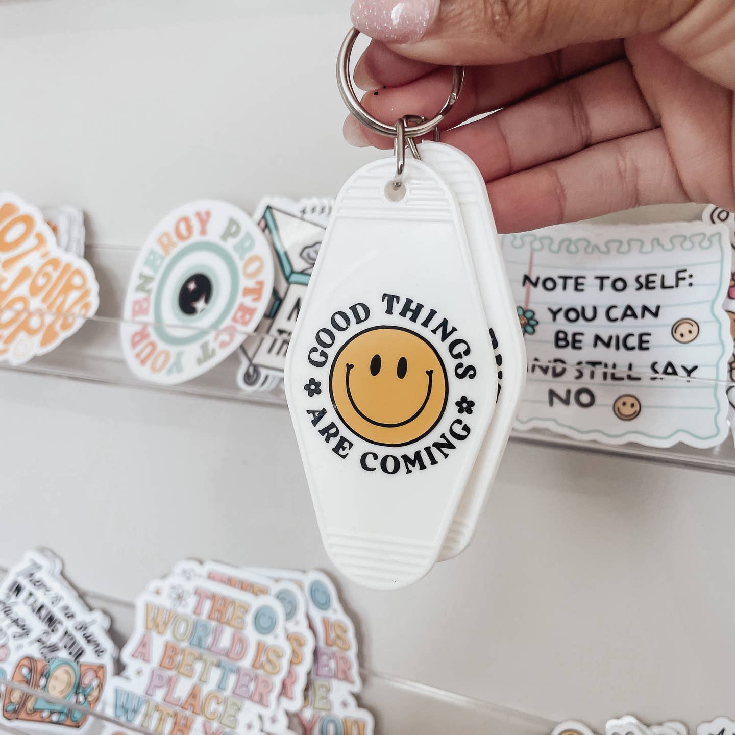 This vintage Good Things are Coming Motel Keychain is for those looking to add some retro positivity to their key collection! Unlock good vibes and spiritual vibes as you carry this miniature reminder that the universe is here to support you! Get ready for all the good thangs to come your way!