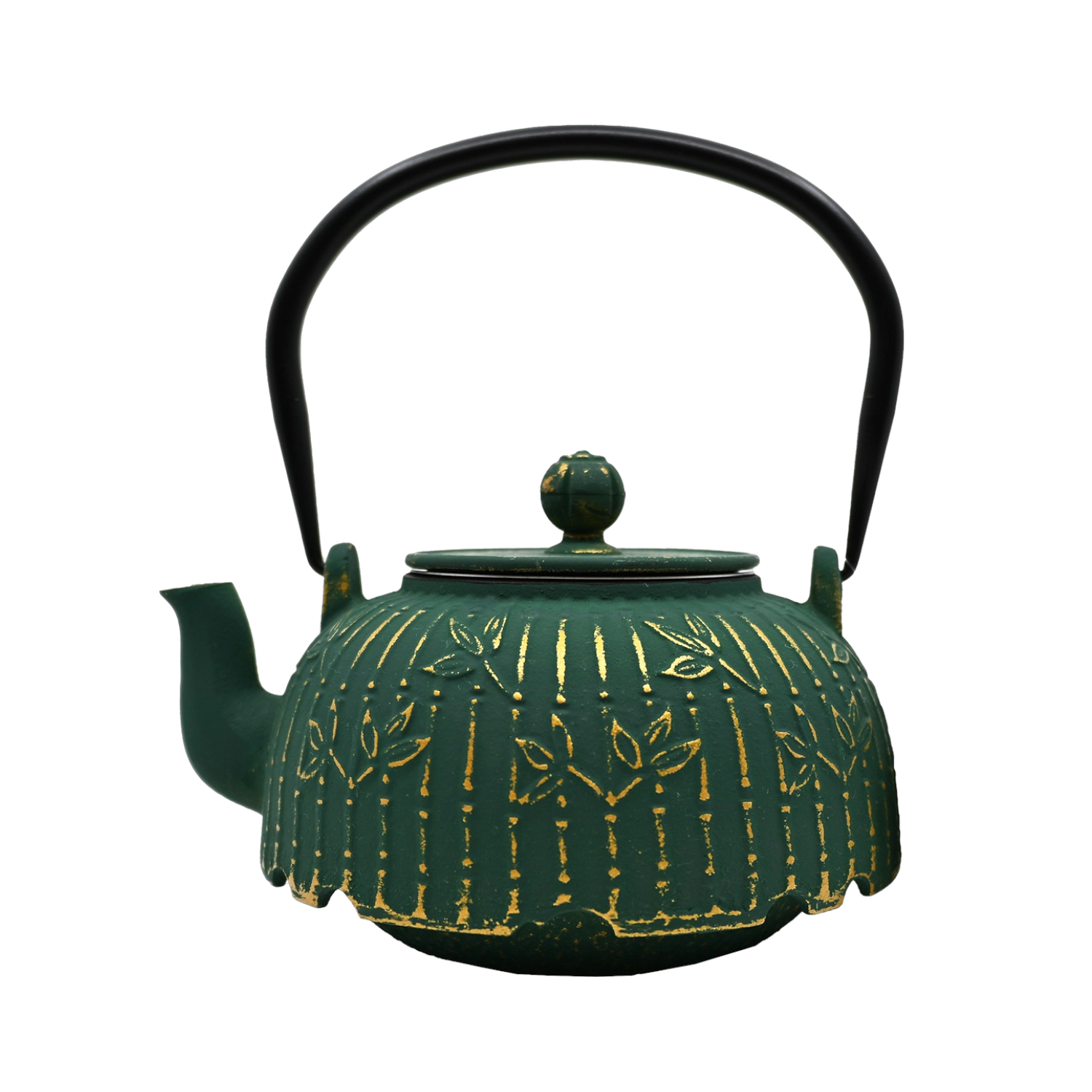 Green Bamboo Design 32oz Cast Iron Tea Pot