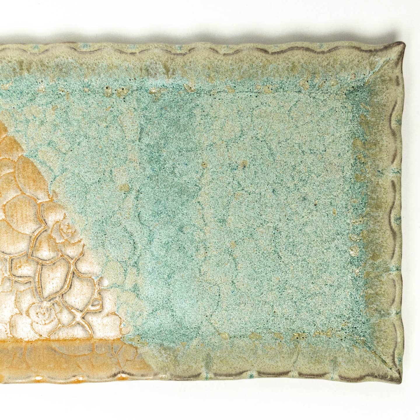 Green Succulent Pattern 12" Handmade Ceramic Platter