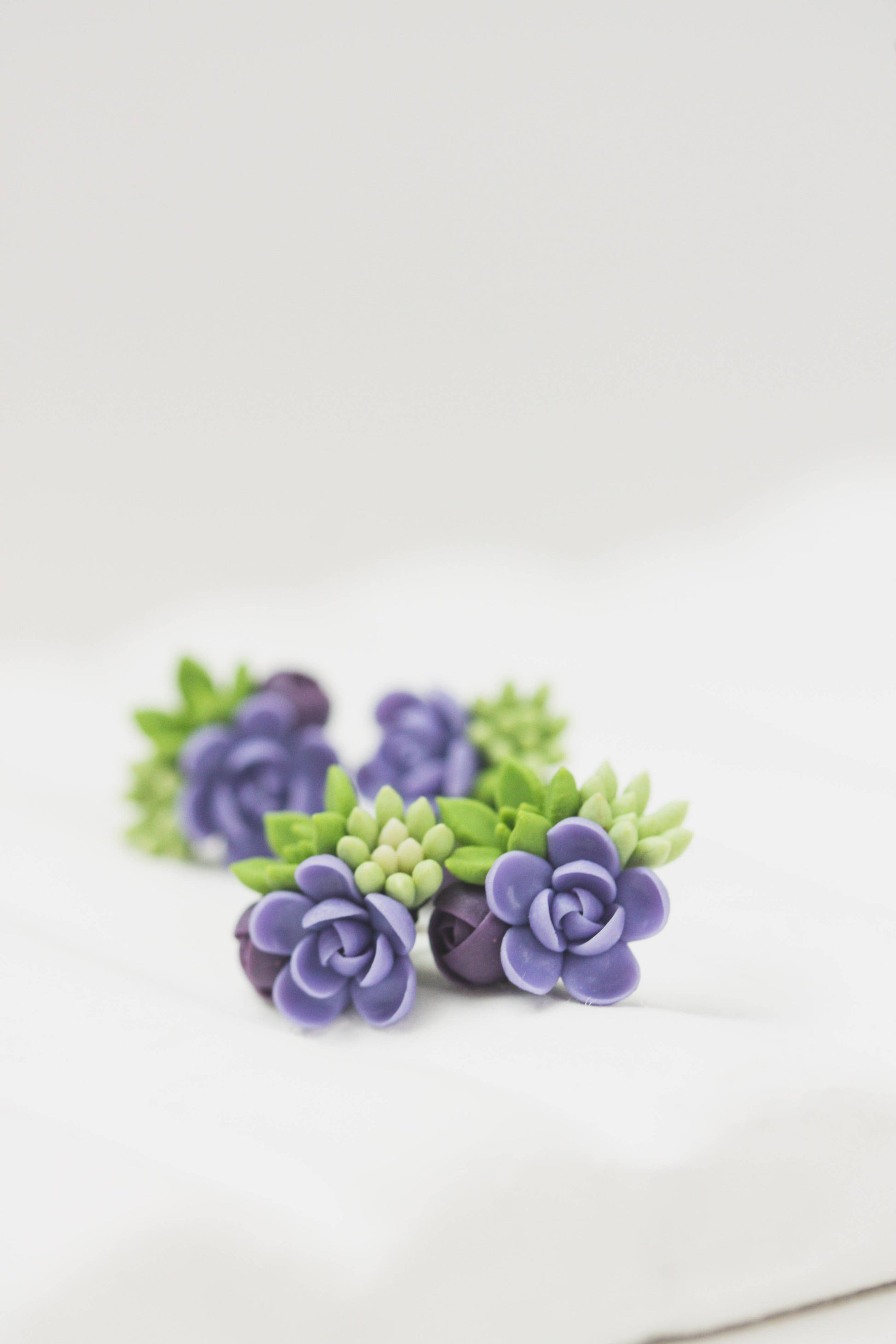 Handmade Succulent and Floral Bouquet Earrings - Purple Gree