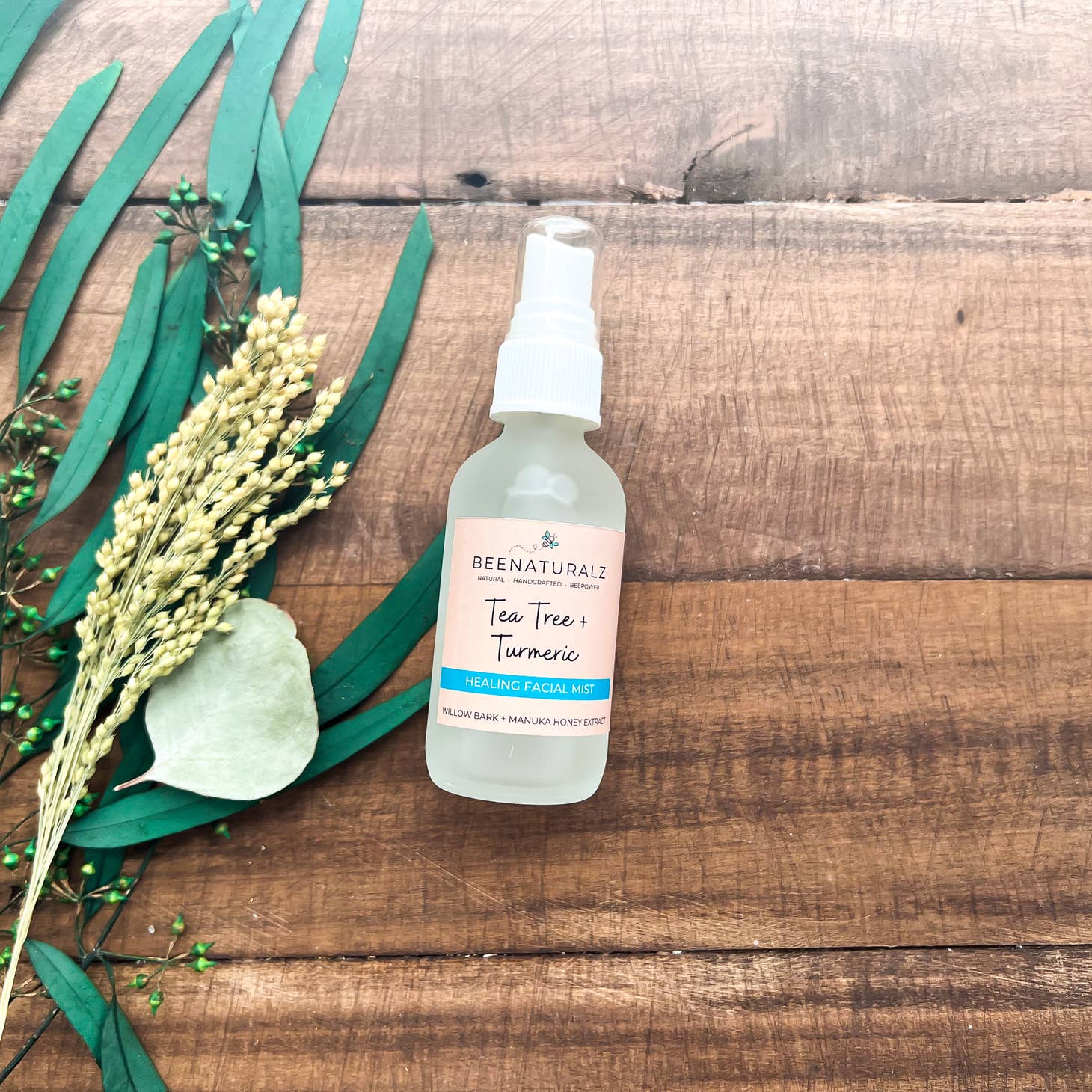 The Healing Facial Mist features organic turmeric and tea tree hydrosols, active extracts, aloe, and witch hazel. This unique formulation helps to balance your skin's natural sebum production to help control oil buildup and shine on oily or acne-prone skin.