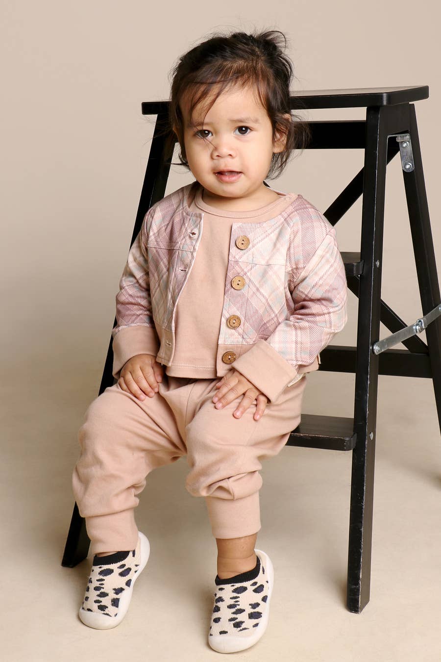 Trendy, printed checks in neutral colors on organic jacket is fully GOTS certified organic - made from finest organic cotton to give premium quality and finish to the garment. The two-layered jacket is perfect to keep baby warm and cozy. It can also be paired with other coordinating styles from our Diversity collection.