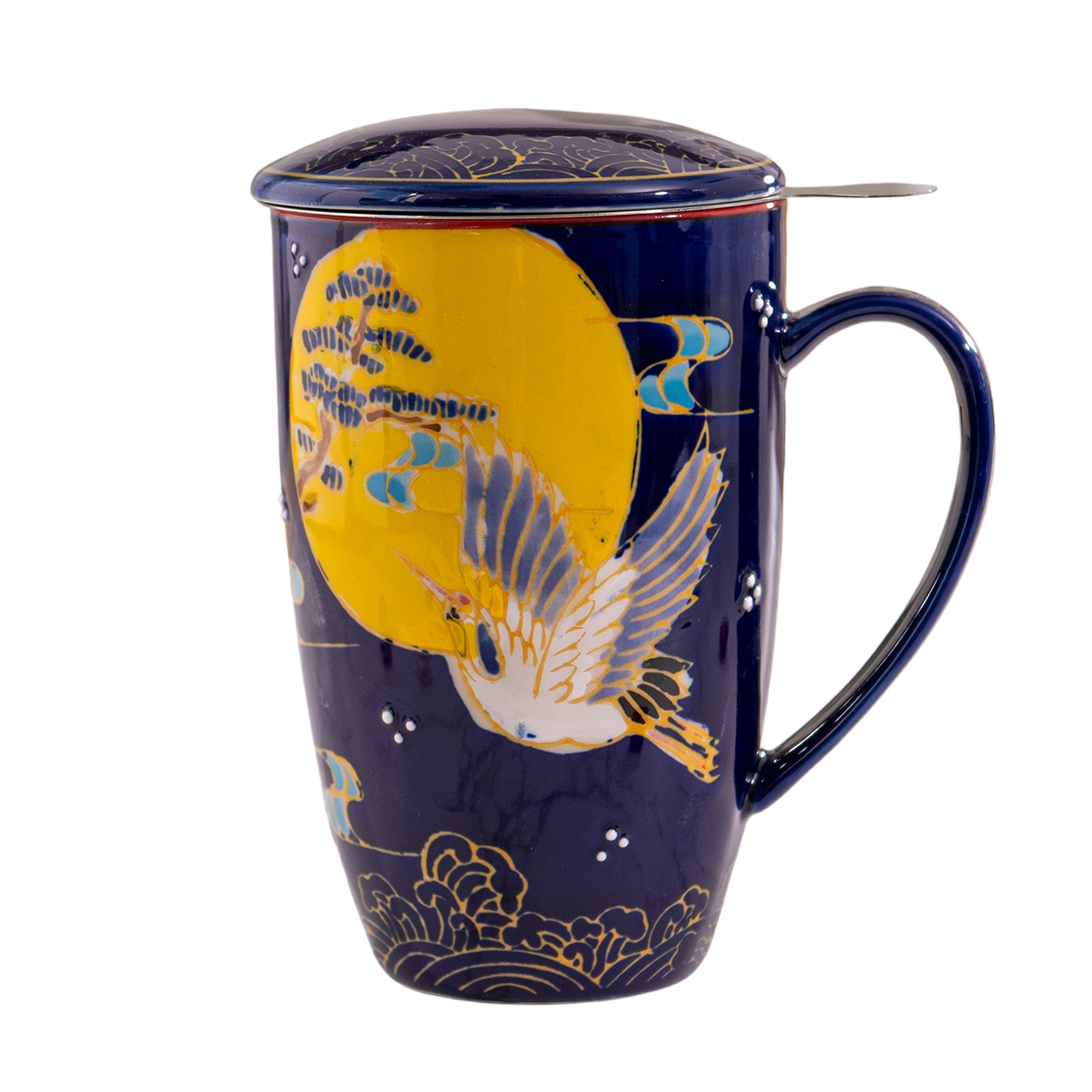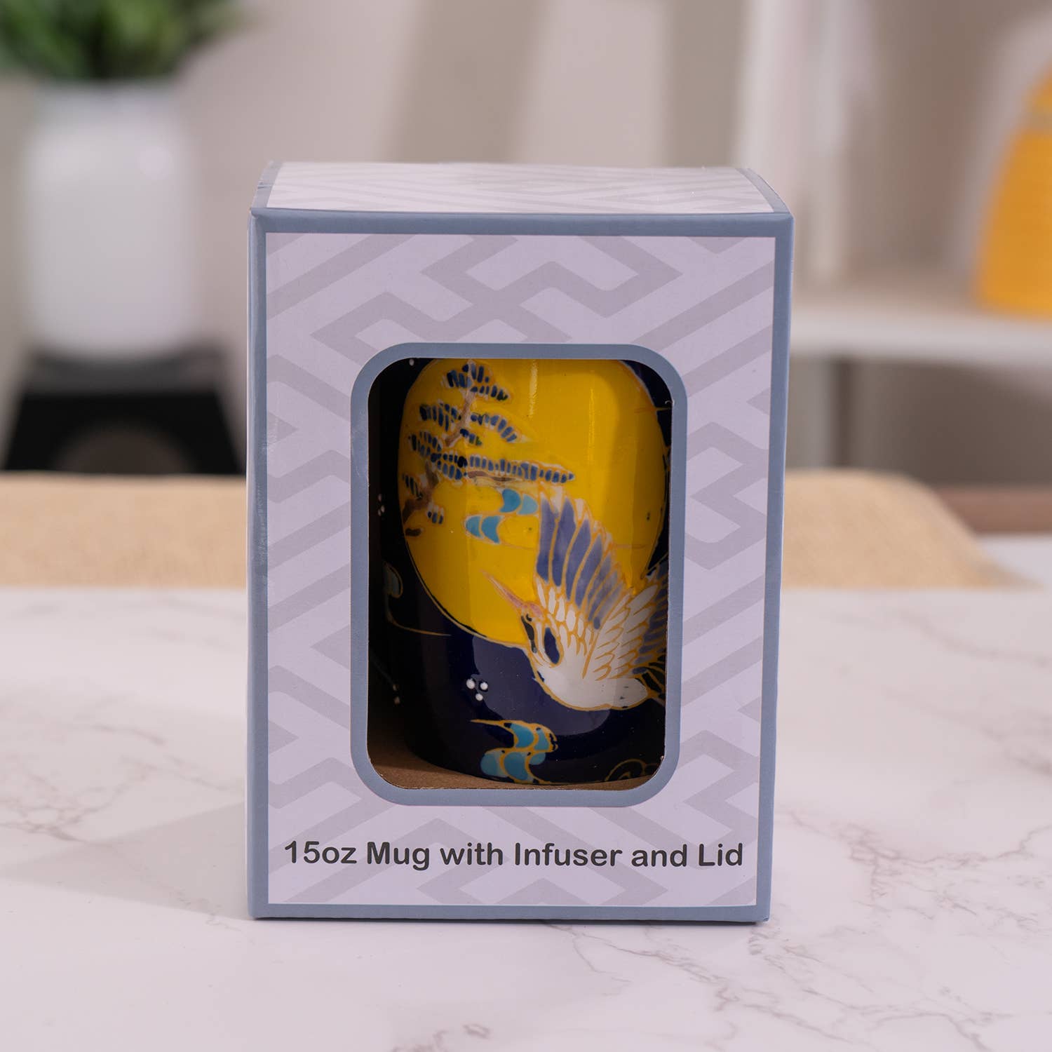 Japanese Crane Design 15oz Tea Mug With Lid and Infuser