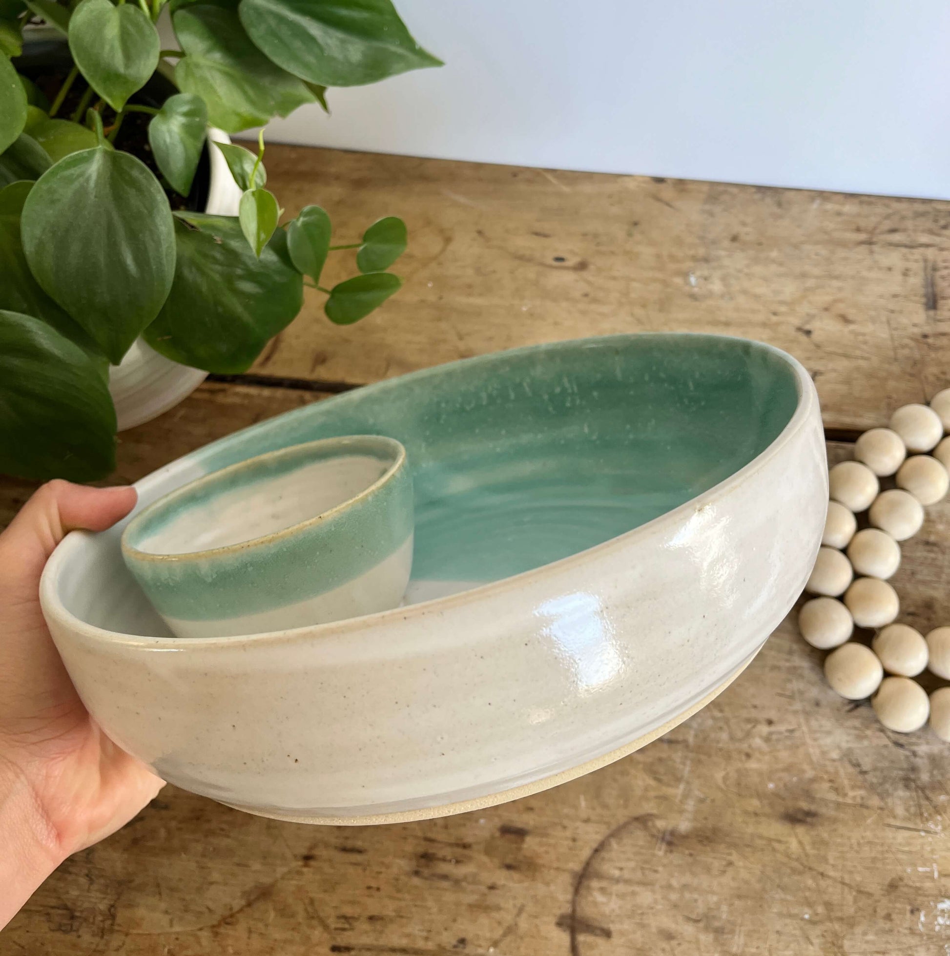 This item is handmade on the potter’s wheel and then glazed by hand in a studio right in West Palm Beach, FL!