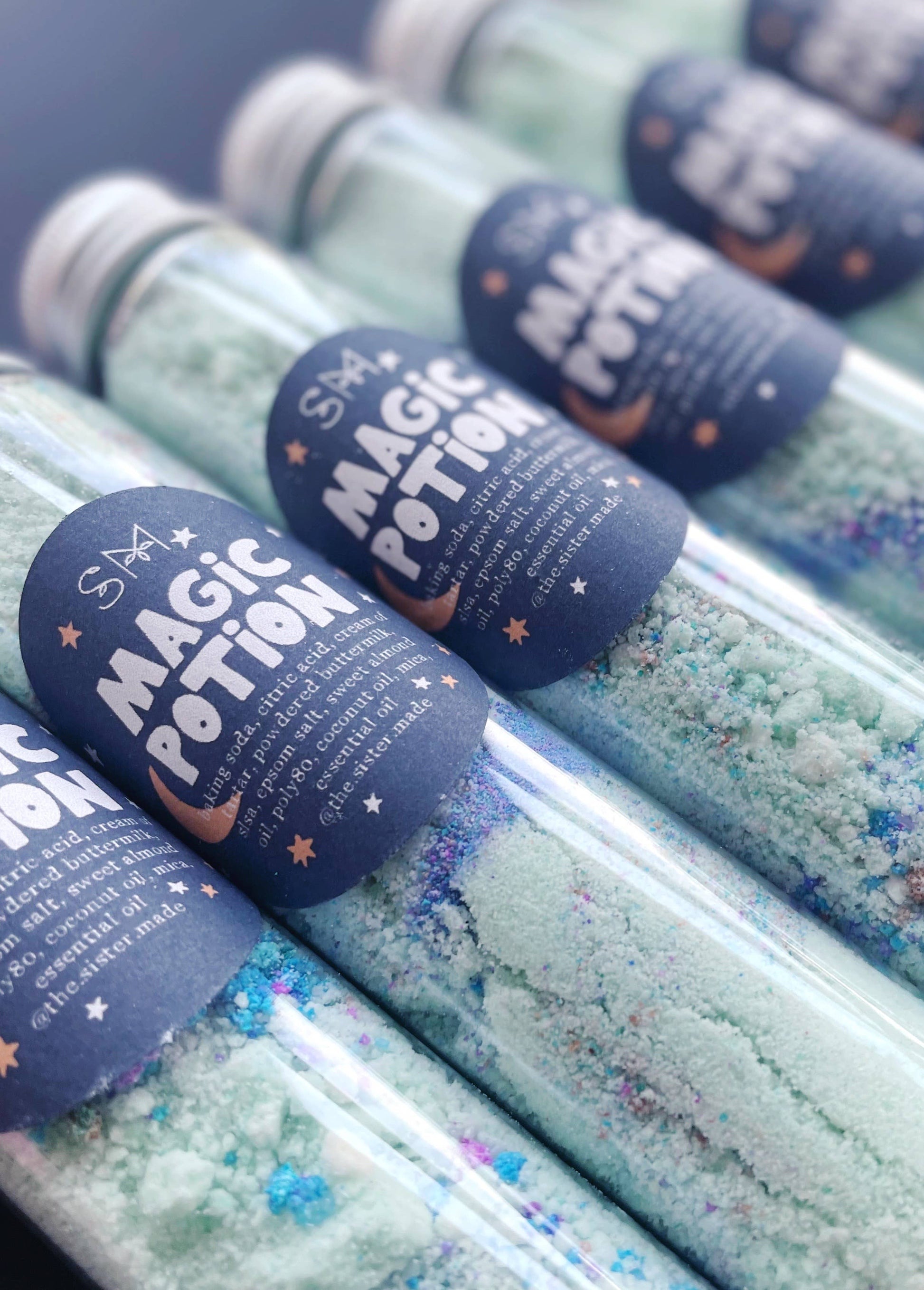 This "magic potion" bath dust is so much fun in the bath! Pour in a little at a time to bath water or add to a water sensor bin! (Bath dust is a deconstructed bath bomb)