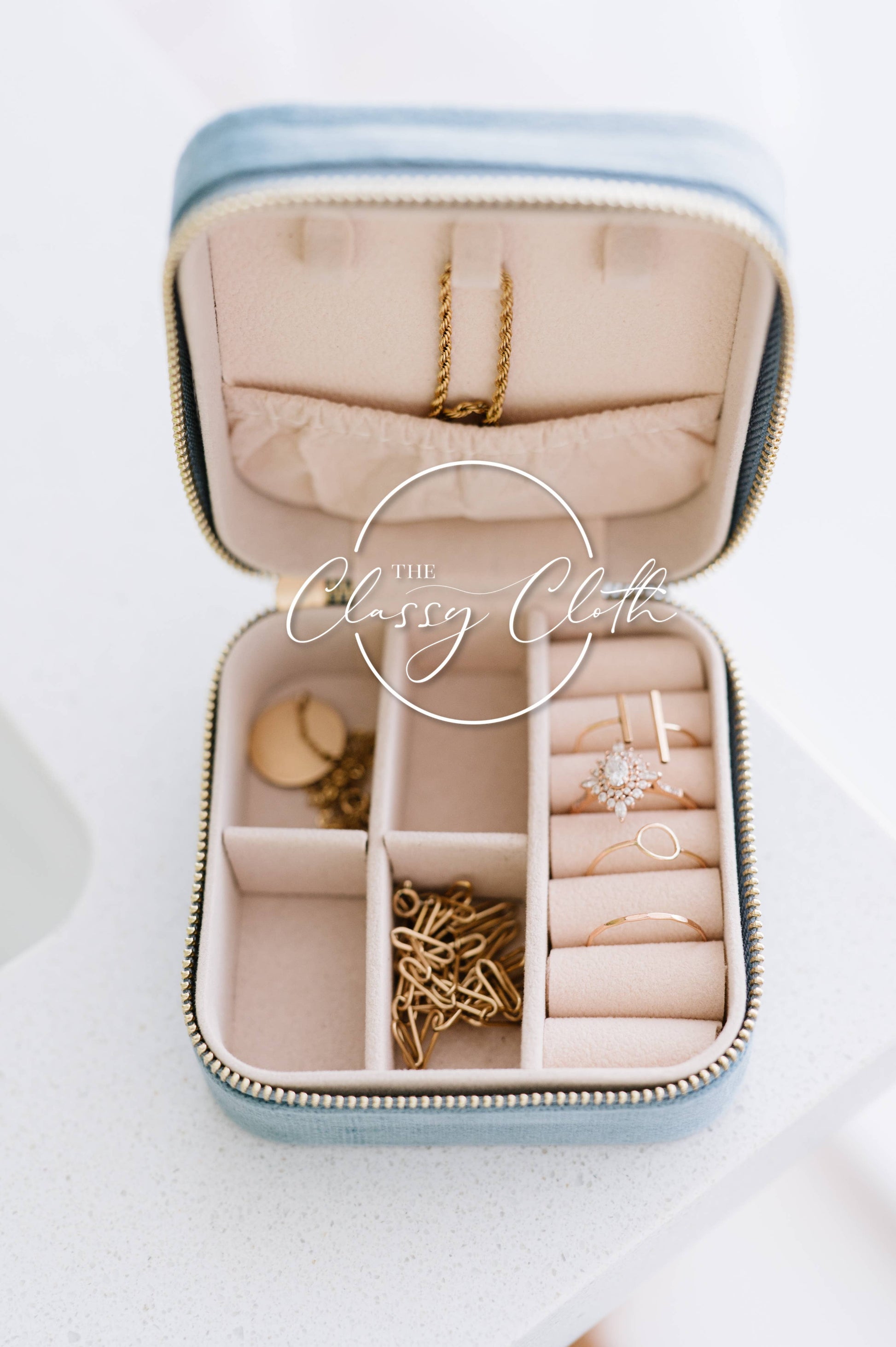 Mini Velvet Jewelry Case - Dusty Blue