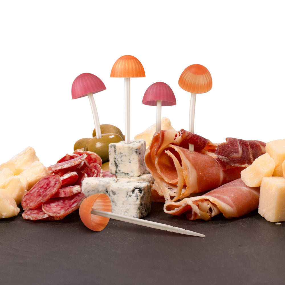 Let your guests forage for snacks in style with Fred’s Munchrooms. These mushroom-shaped party picks add an enchanting touch to your table and are sure to sprout smiles. Set of 12 reusable picks made of food-safe PP plastic. Hand wash only.