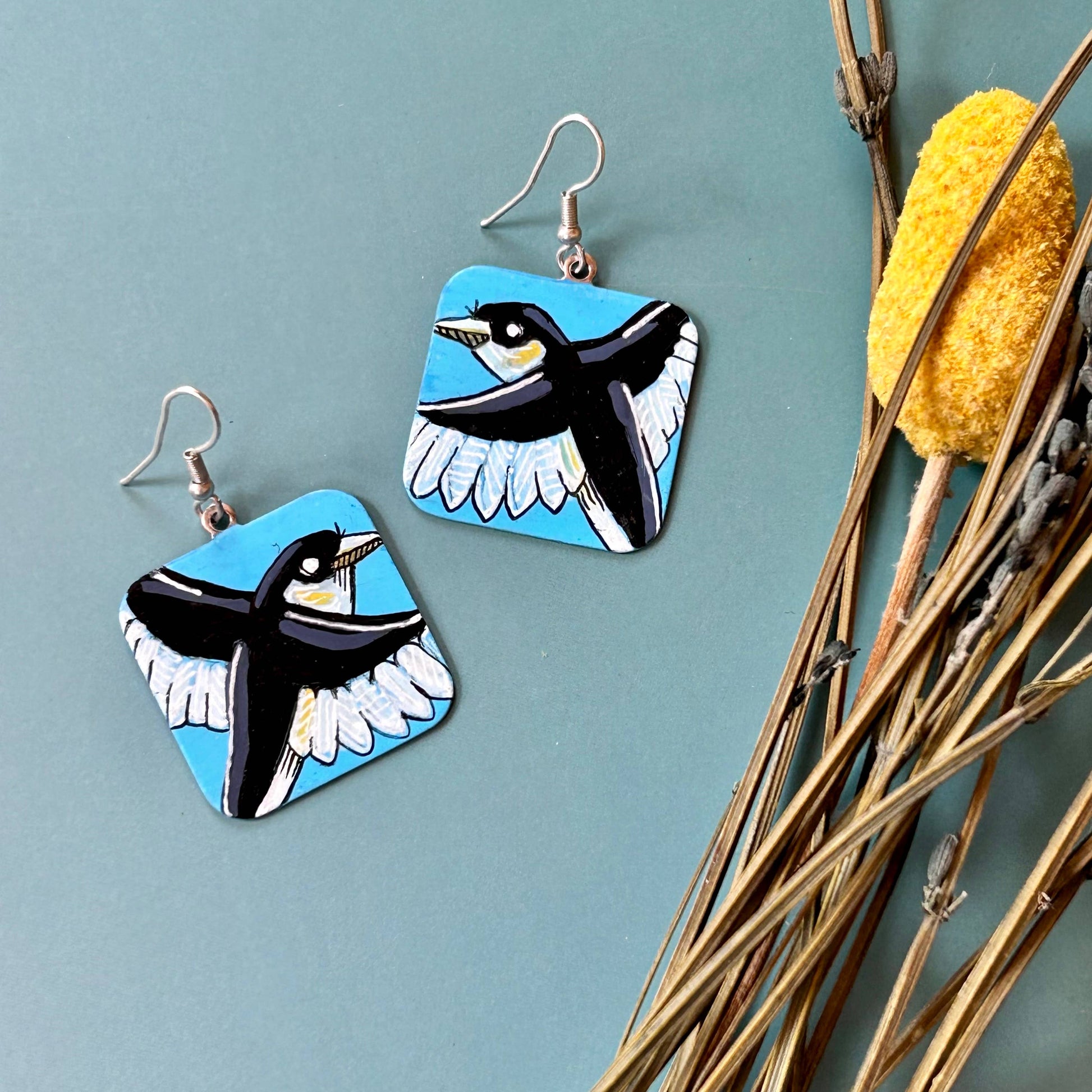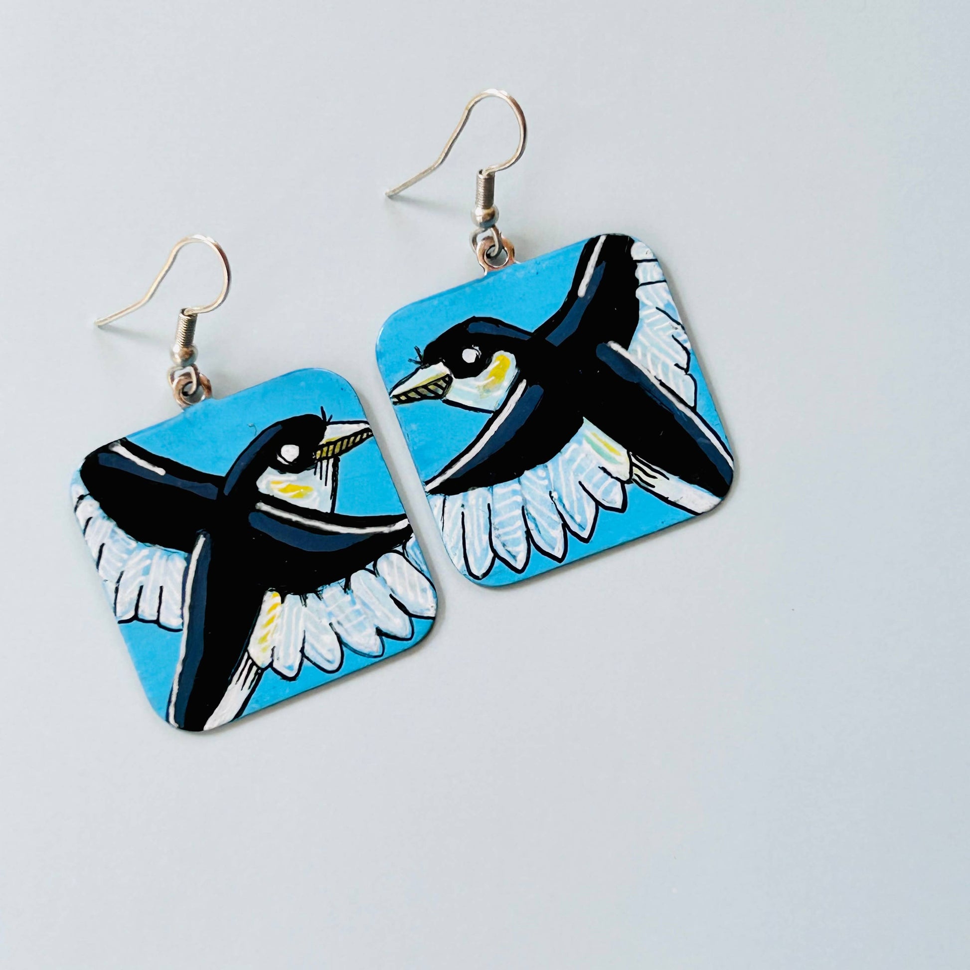 Introducing original artwork for your ear lobes! Each earring is hand-painted with an original ink & acrylic illustration. Completely unique & one-of-a-kind.