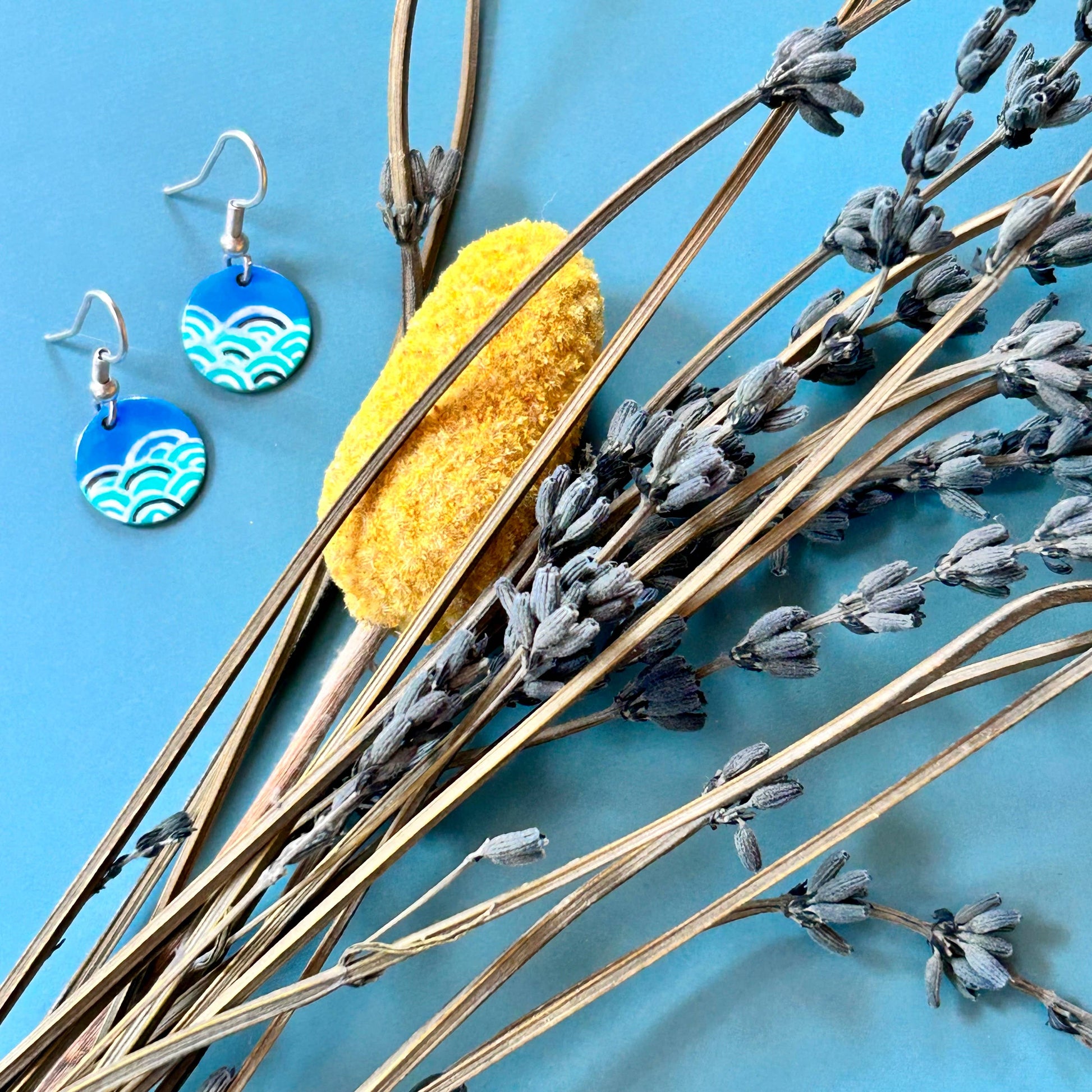 Brass, Ink & Acrylic -All materials are nickel & lead free -Earrings are sealed with metal lacquer to protect acrylic detail.