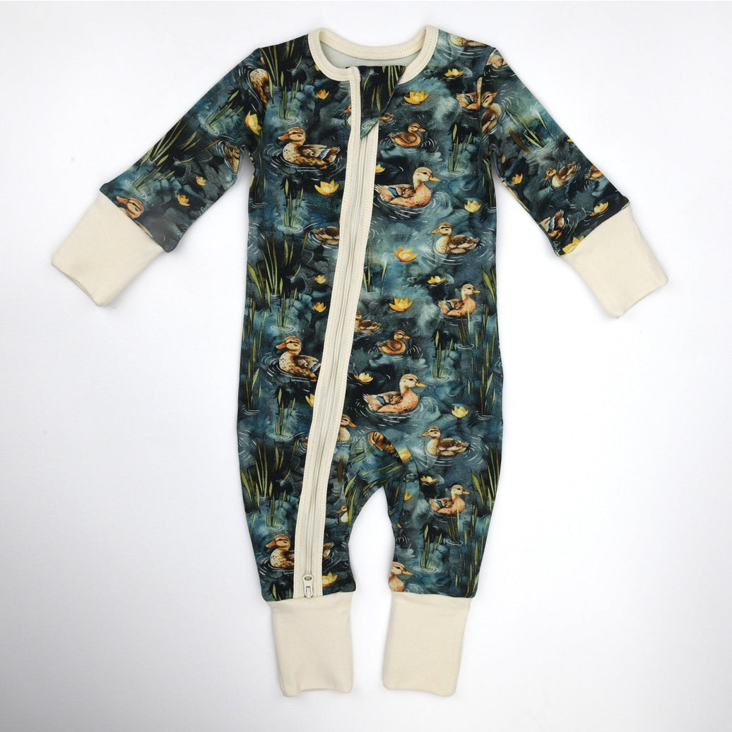 Ultra soft & stretchy 98% Organic Cotton with 2% Spandex- creating a natural, breathable, durable, stretchable fabric unlike any other. High quality printing that is very soft to the touch. One zip to put on. Zips all the way down one leg for easy dressing. Durable YKK double zipper also zips up for quick diaper changes. Fold over cuffs on hands and feet create a versatile sleeper that keeps baby's hands and feet warm when it's cold.