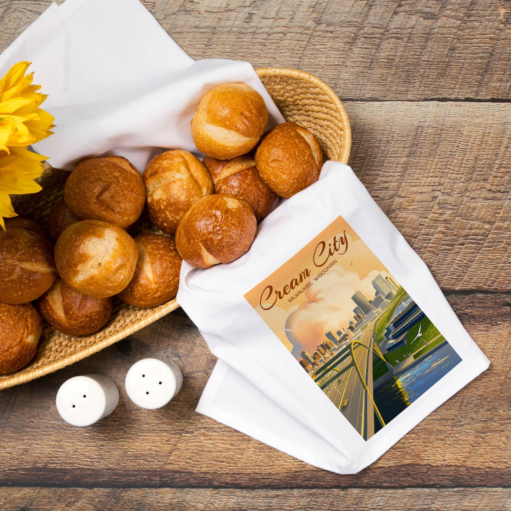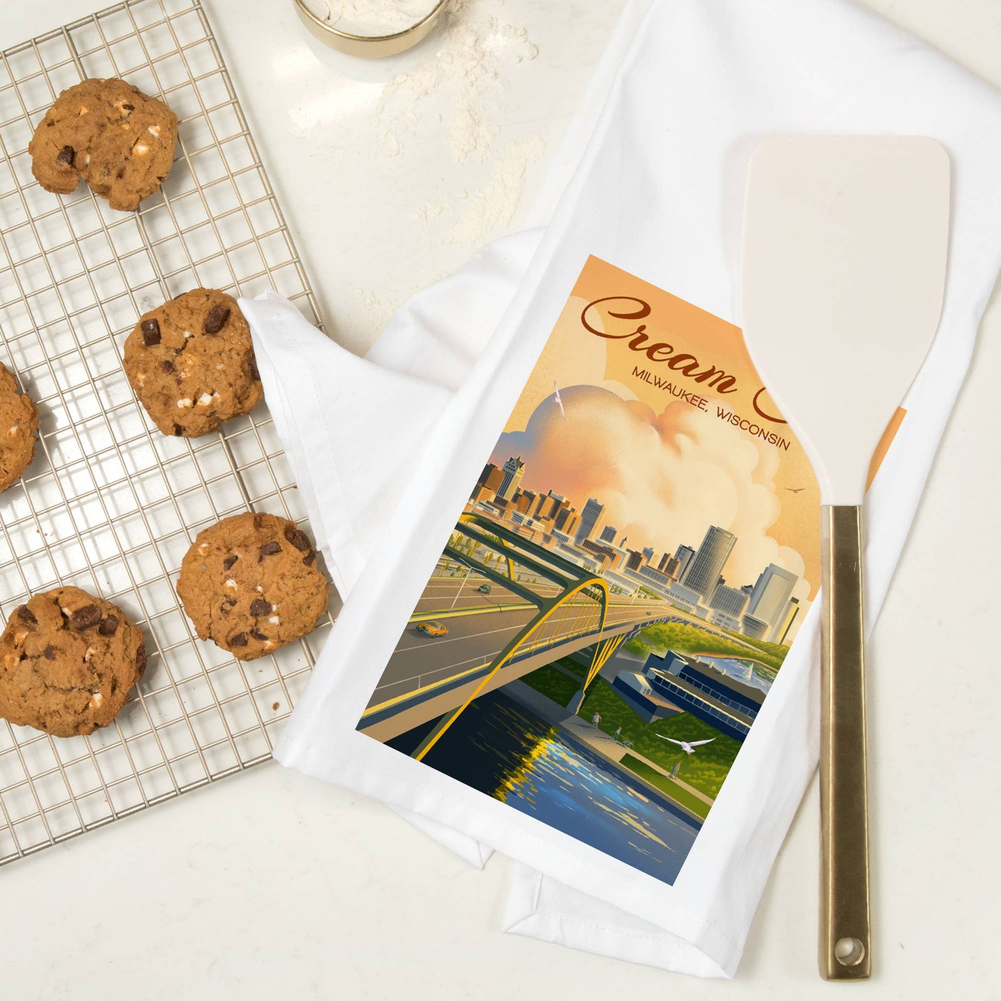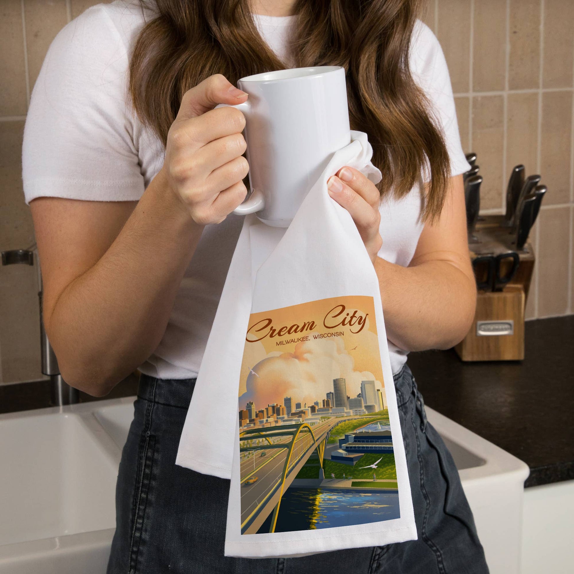 Organic Tea Towel Milwaukee, Wisconsin Cream City Lithograph