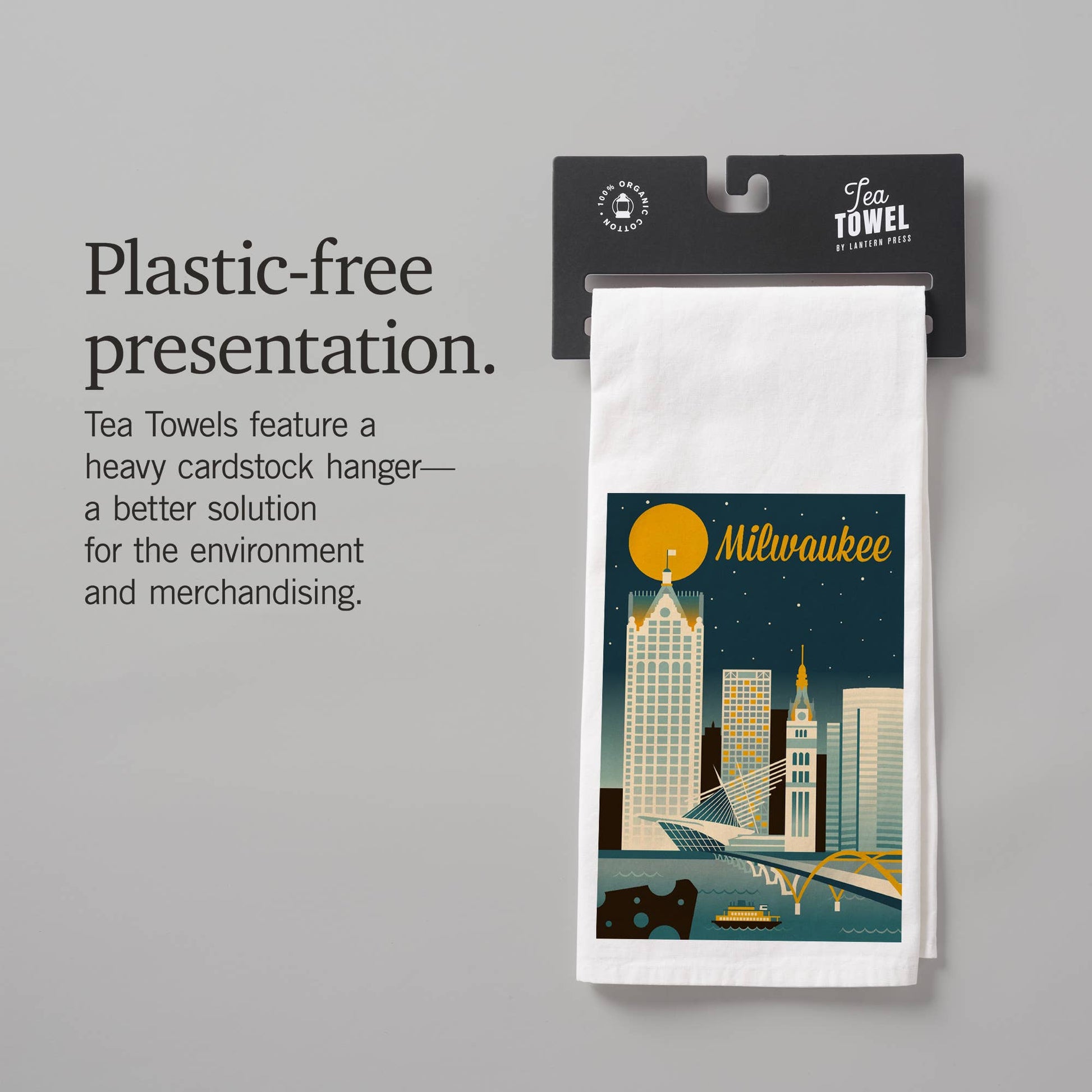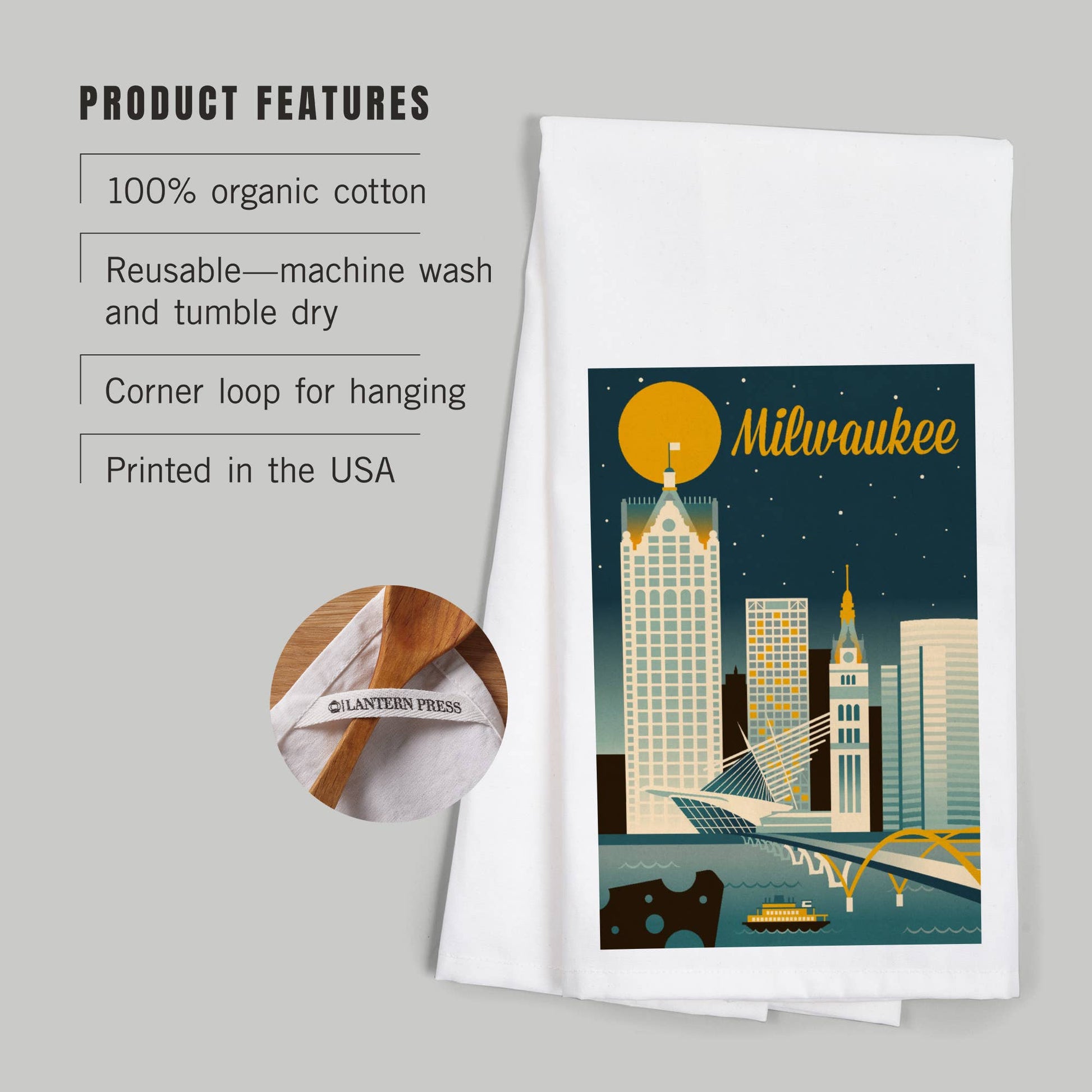 ORGANIC TEA TOWEL Milwaukee, Wisconsin, Retro Skyline
