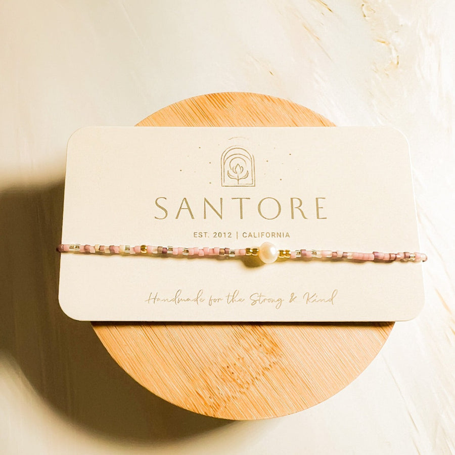 Since ancient times, pearls have been precious. The pearl meaning is centered around purity, balance, and inner wisdom. We've combined a solitare freshwater pearl with colored Miyuki beads. These tiny precious beads are made in Japan and known to be of the highest quality. The unique thread and knot at the back allows you to adjust the bracelet to any size and mix it into any stack.